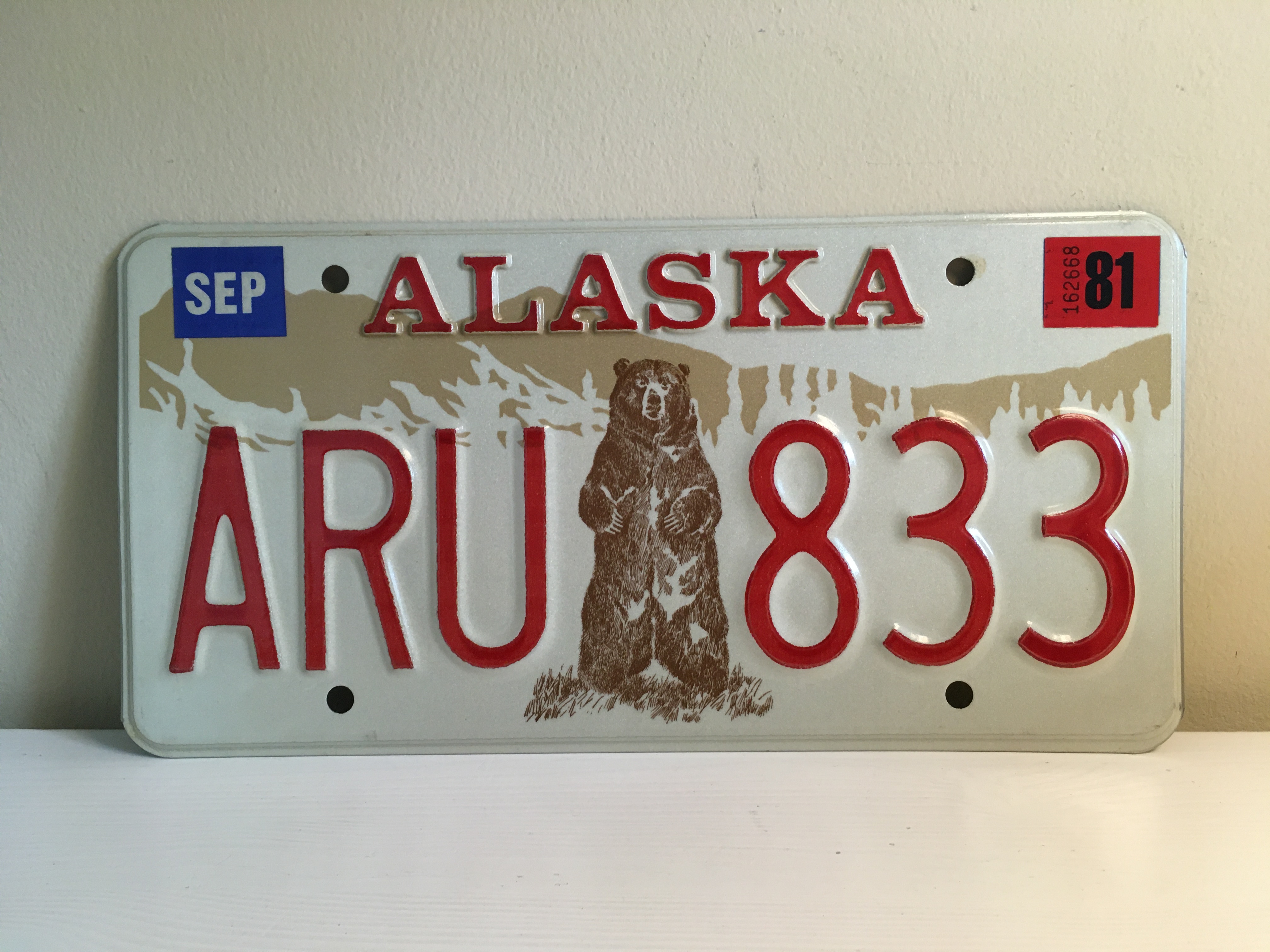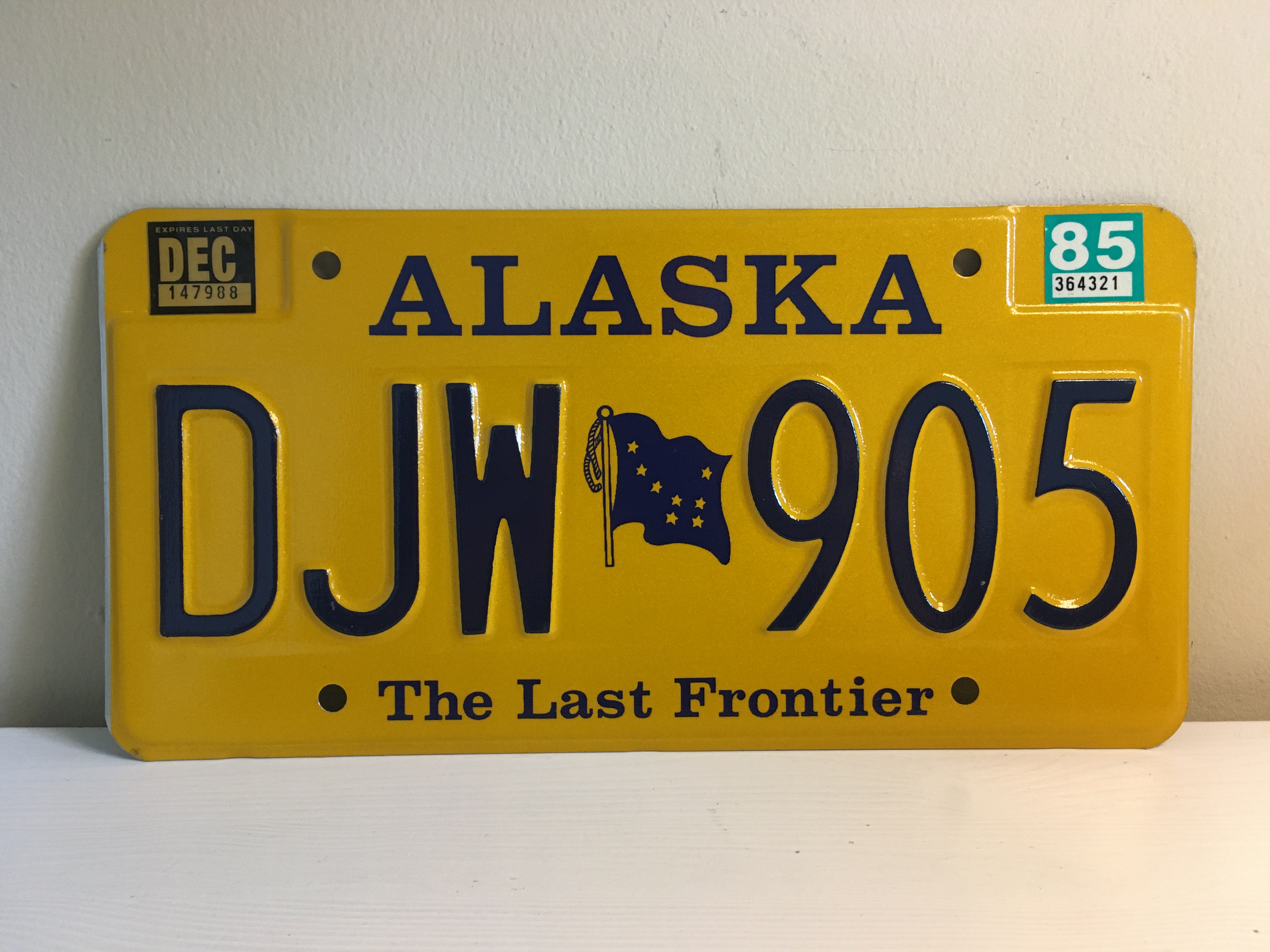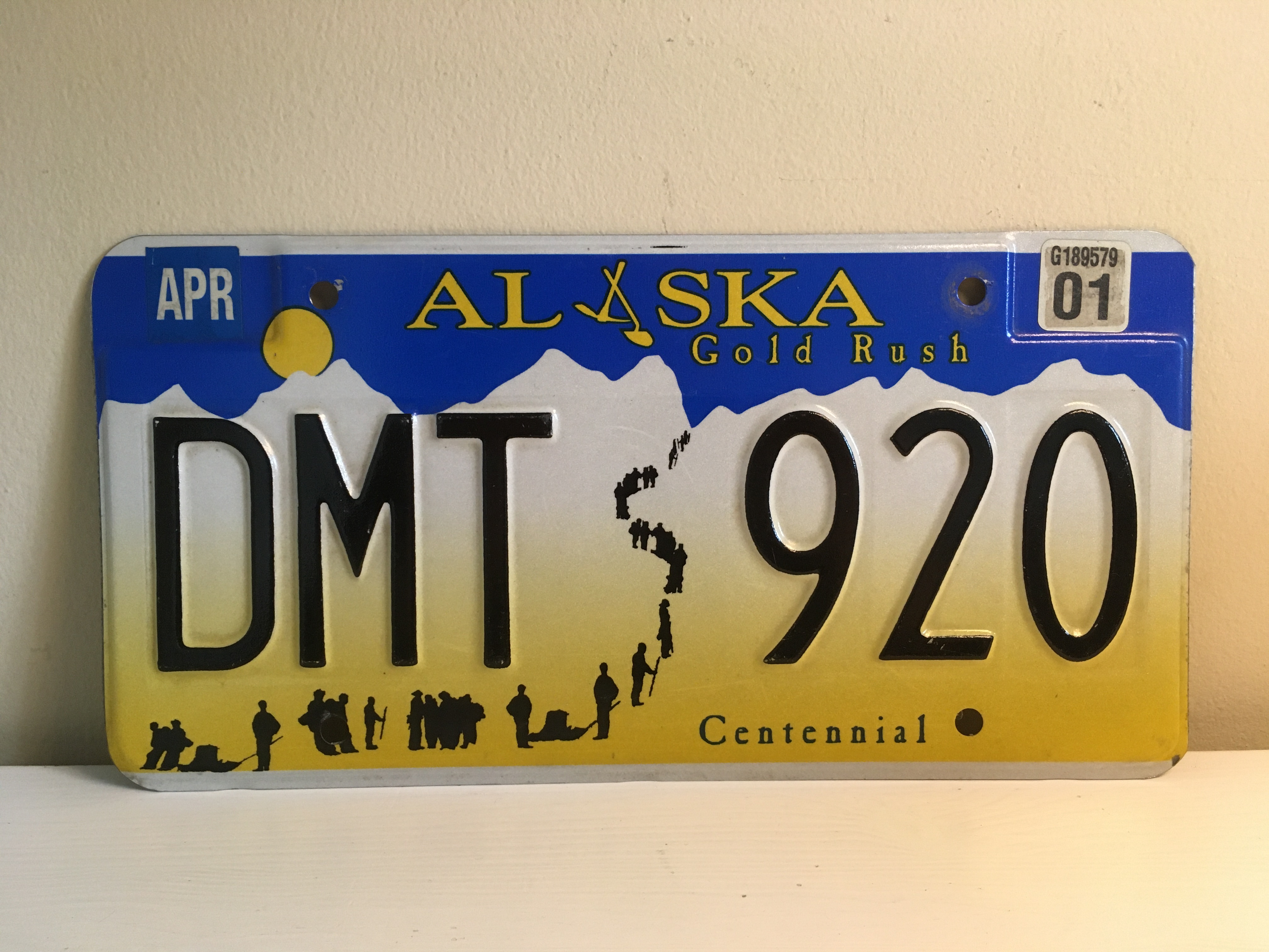Standard US plates Due to the number of fake license plates, I collect license plates with stickers from the US which guarantee the authenticity of a license plate. My collection currently contains 49 embossed license plates with graphic base from 34 different states. The license plates in my collection are the standard plates (not specialty plates) for private cars (not other vehicles) and are embossed (not flat). They are all in very good condition (vg+/ex) and have the original sticker (except for the one from Hawaii) which validated the license plate for circulation (not required for New York and Texas). USA, Alaska