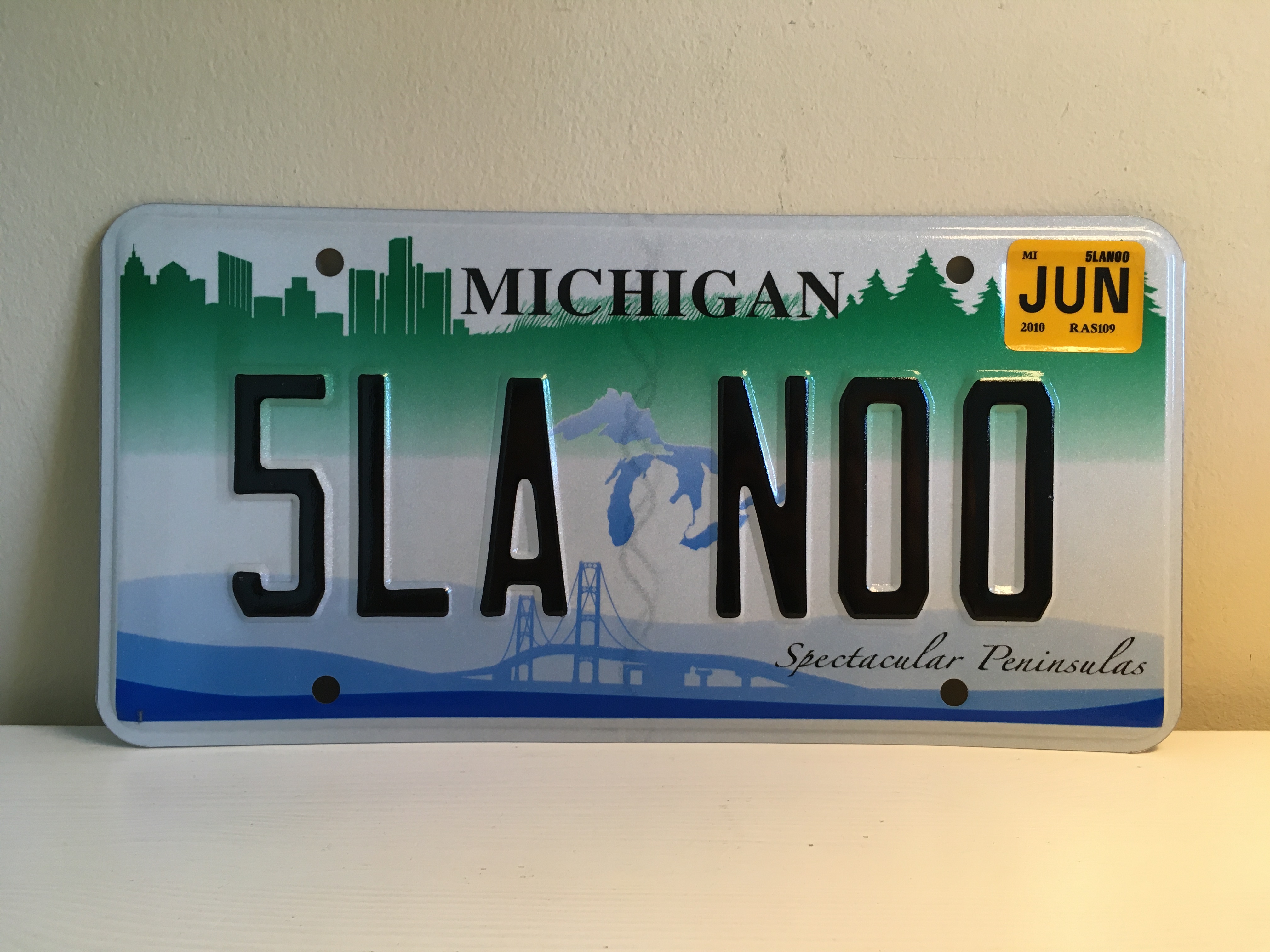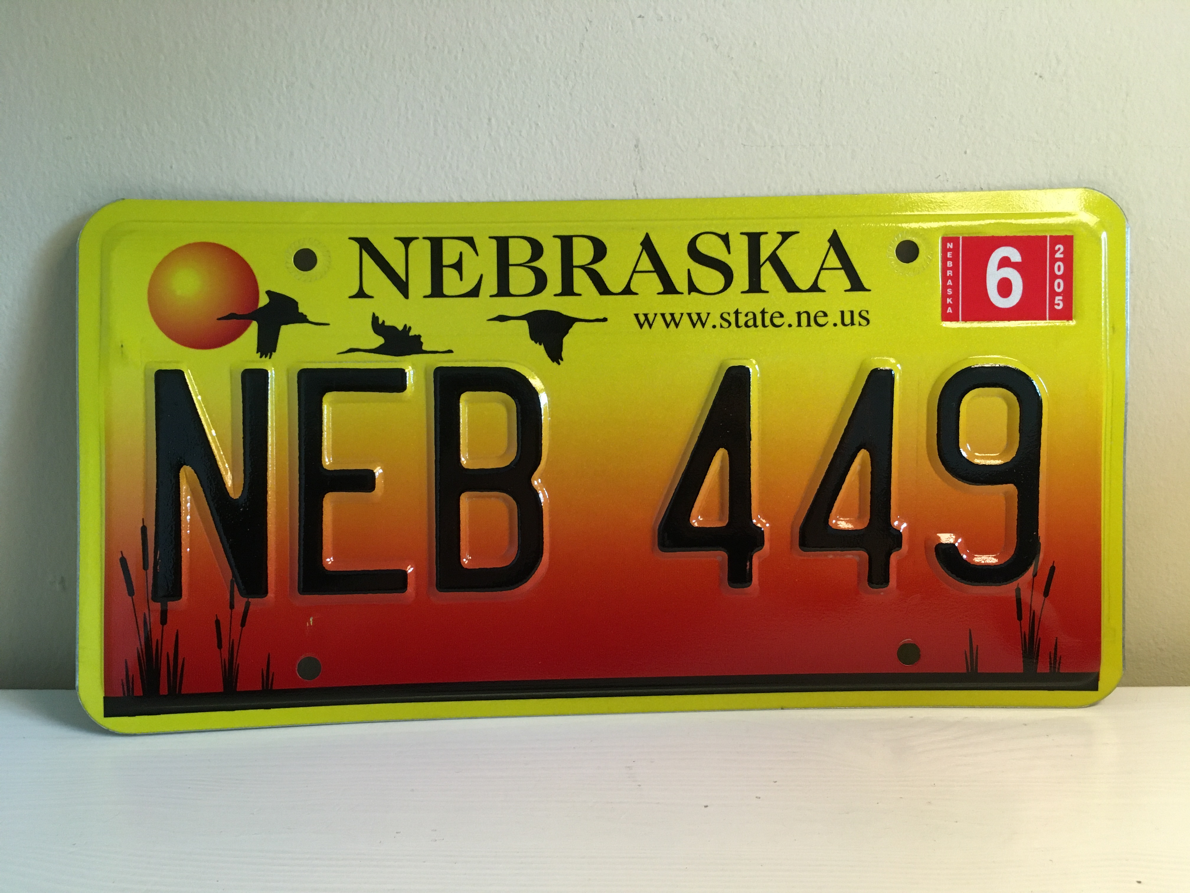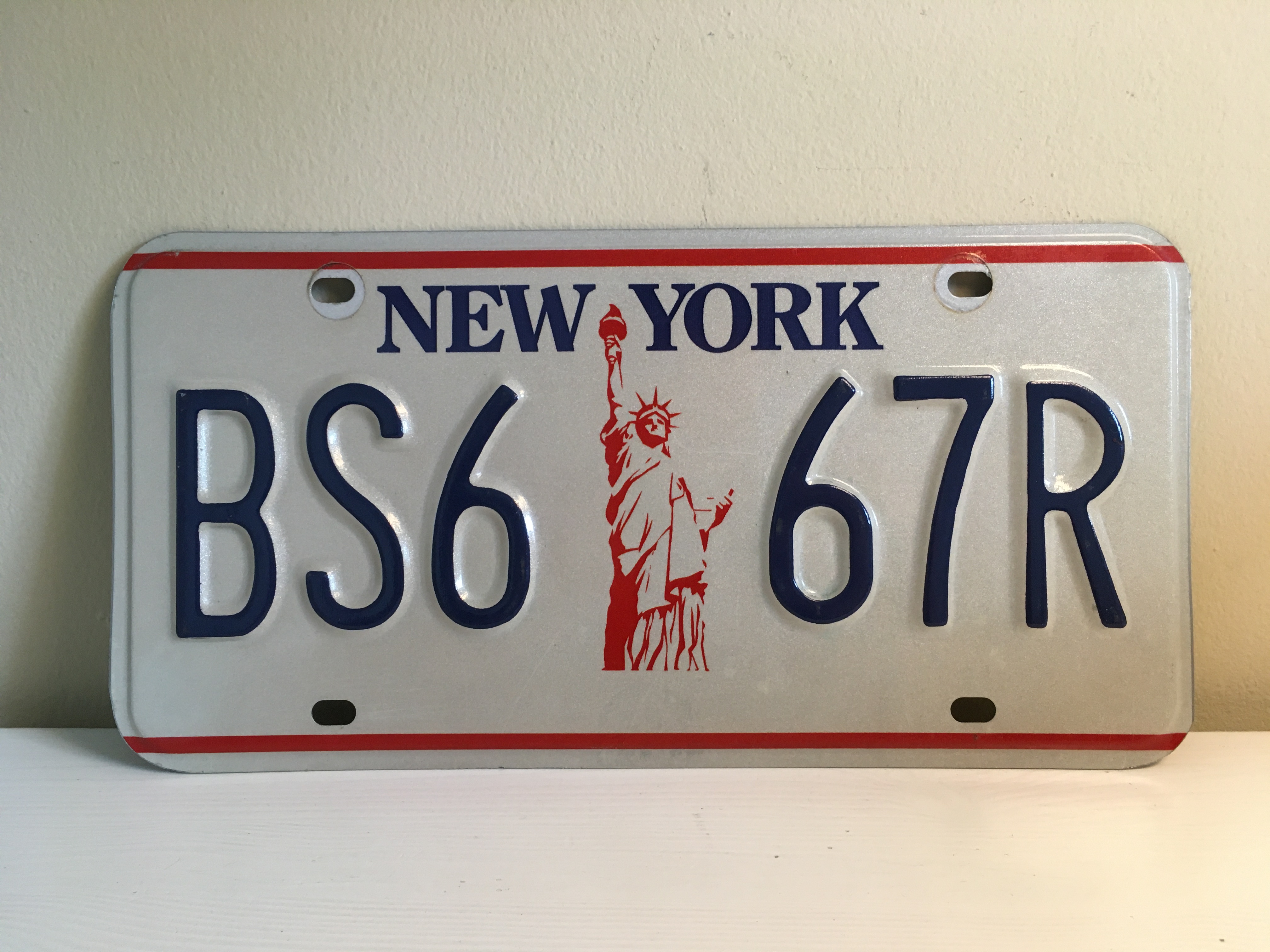 Standard US plates Due to the number of fake license plates, I collect license plates with stickers from the US which guarantee the authenticity of a license plate. My collection currently contains 49 embossed license plates with graphic base from 34 different states. The license plates in my collection are the standard plates (not specialty plates) for private cars (not other vehicles) and are embossed (not flat). They are all in very good condition (vg+/ex) and have the original sticker (except for the one from Hawaii) which validated the license plate for circulation (not required for New York and Texas). USA, Alaska