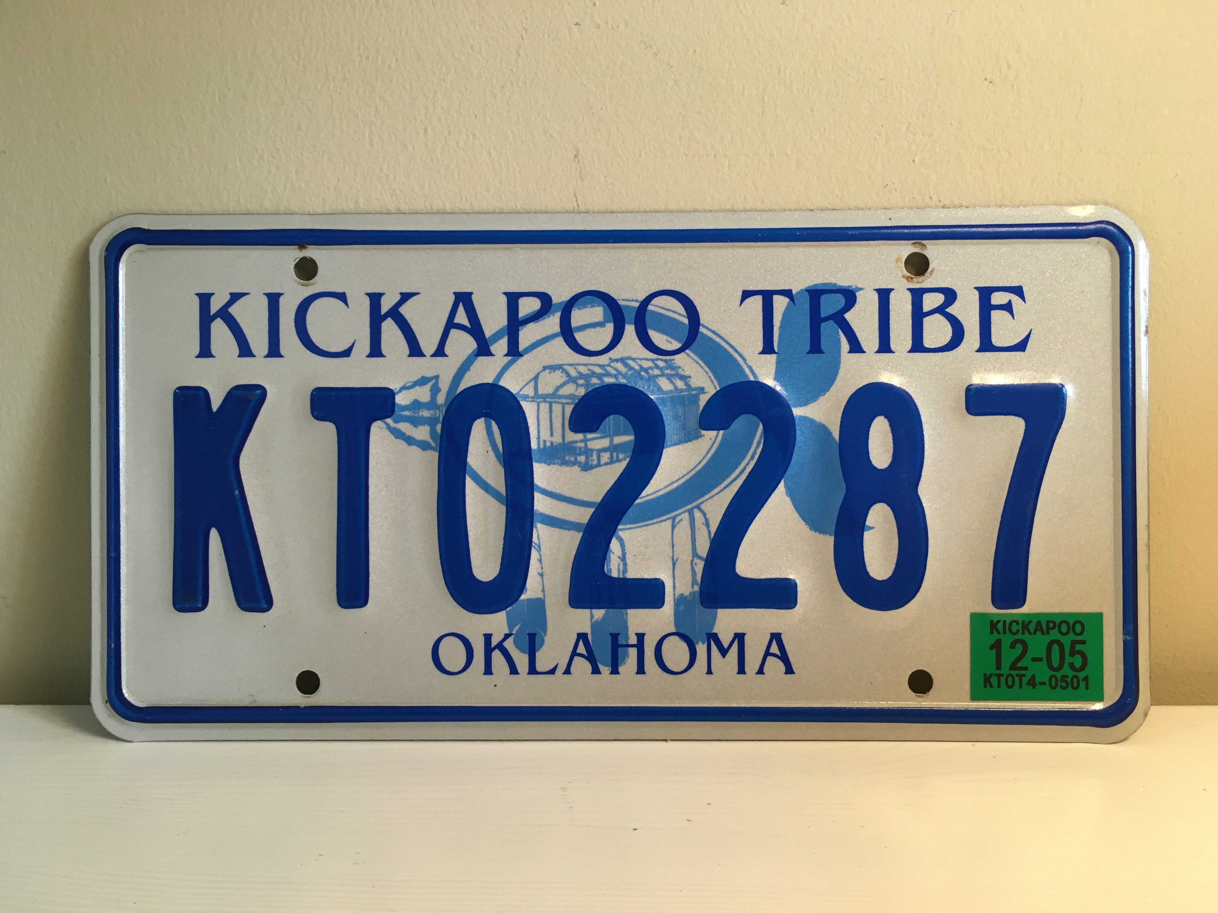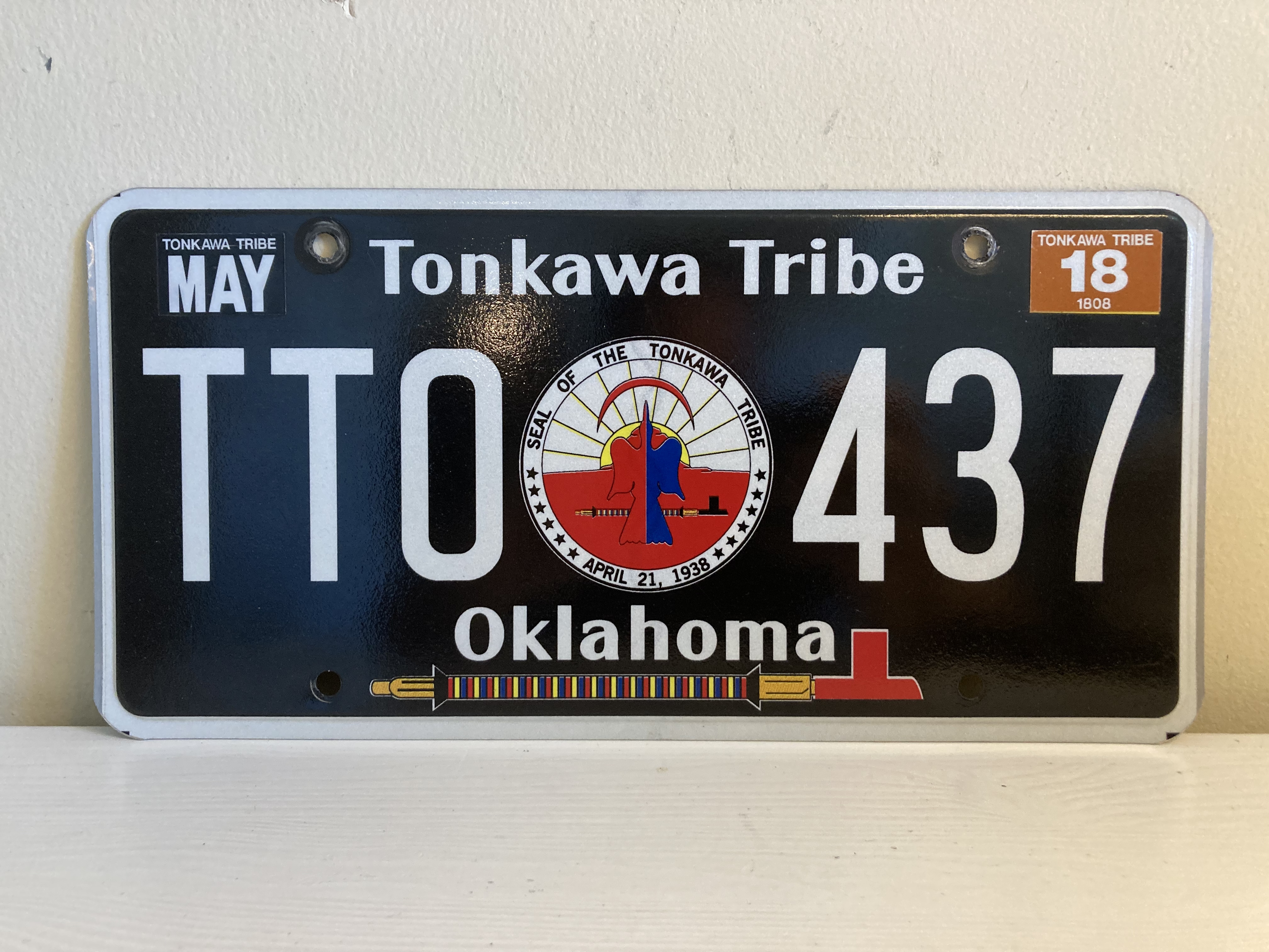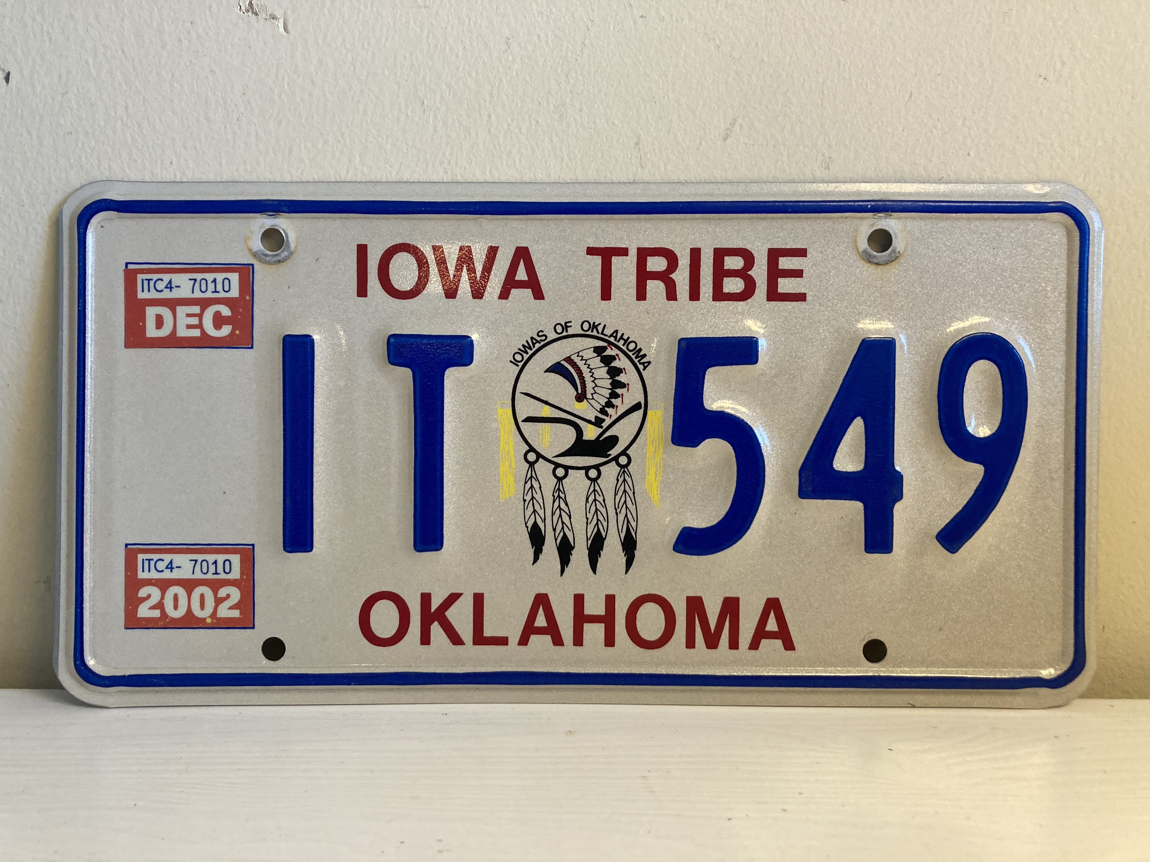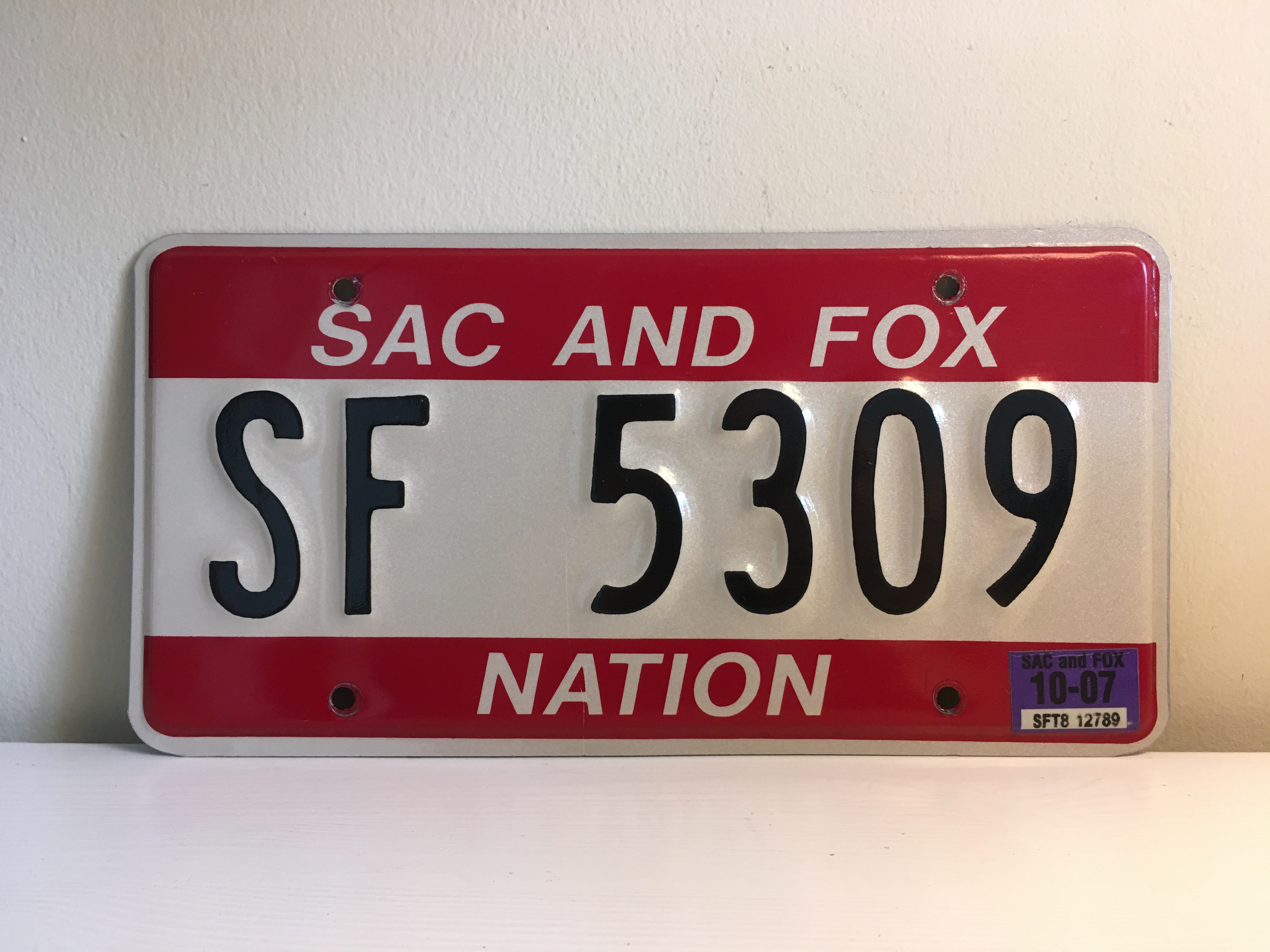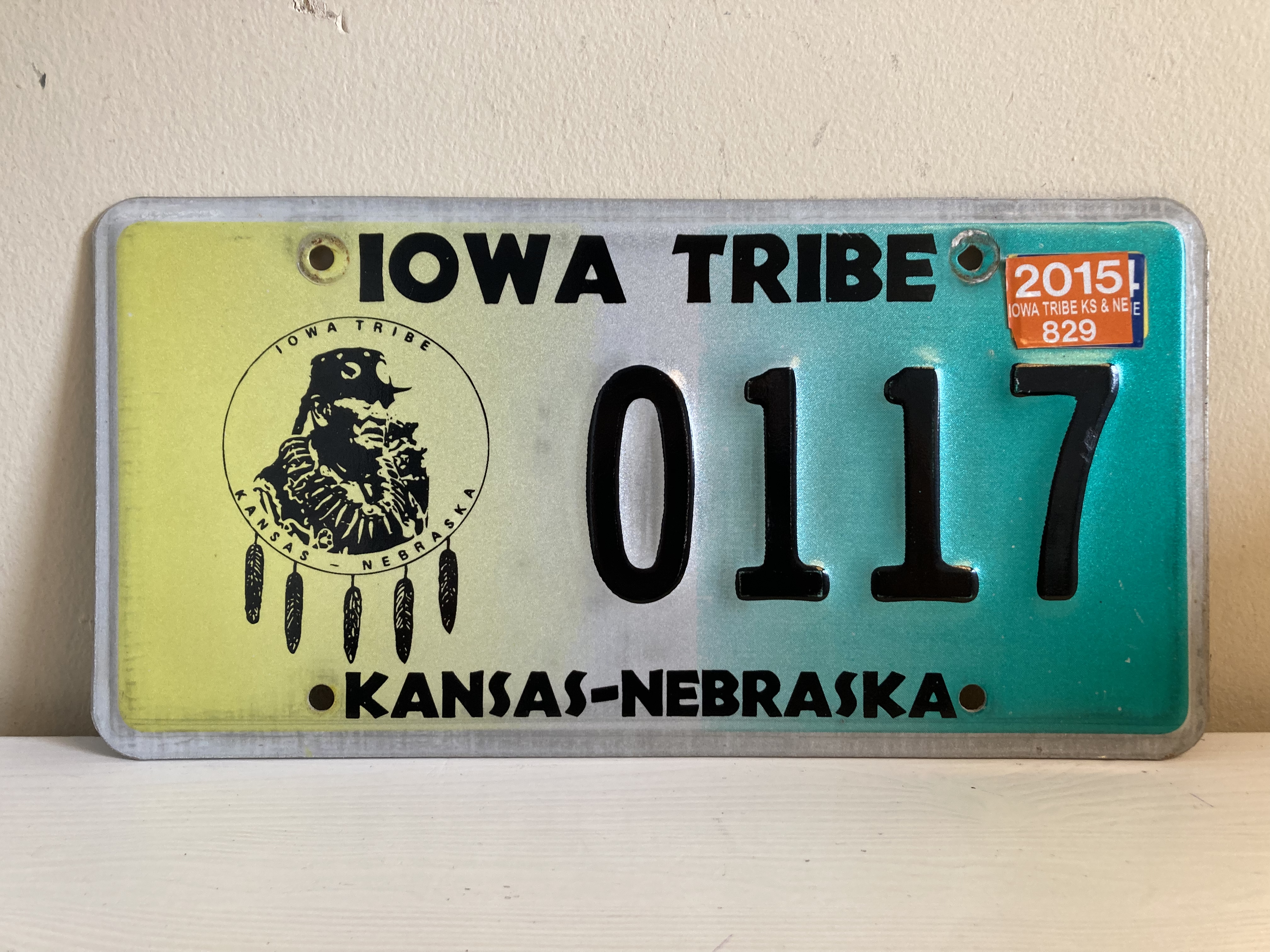 Native American plates My collection also contains 44 license plates of Indian Tribes which are officially recognized by the issuing state. 20 of them were used by tribes with less than 5,000 members. As my other license plates from the US, the license plates of Indian Tribes were issued for private cars, are mostly embossed and in very good condition (vg+/ex) with validation stickers. Iowa Tribe