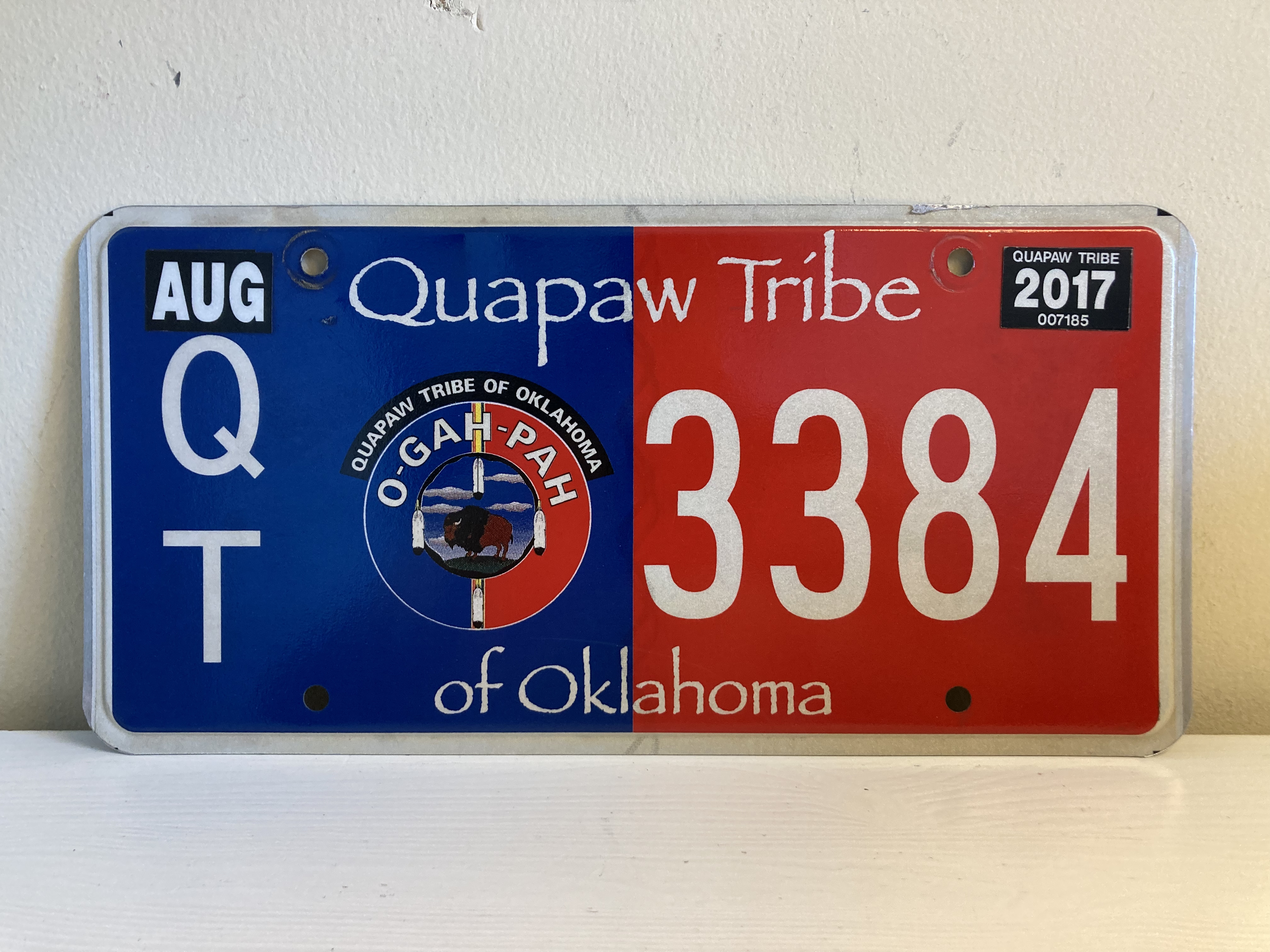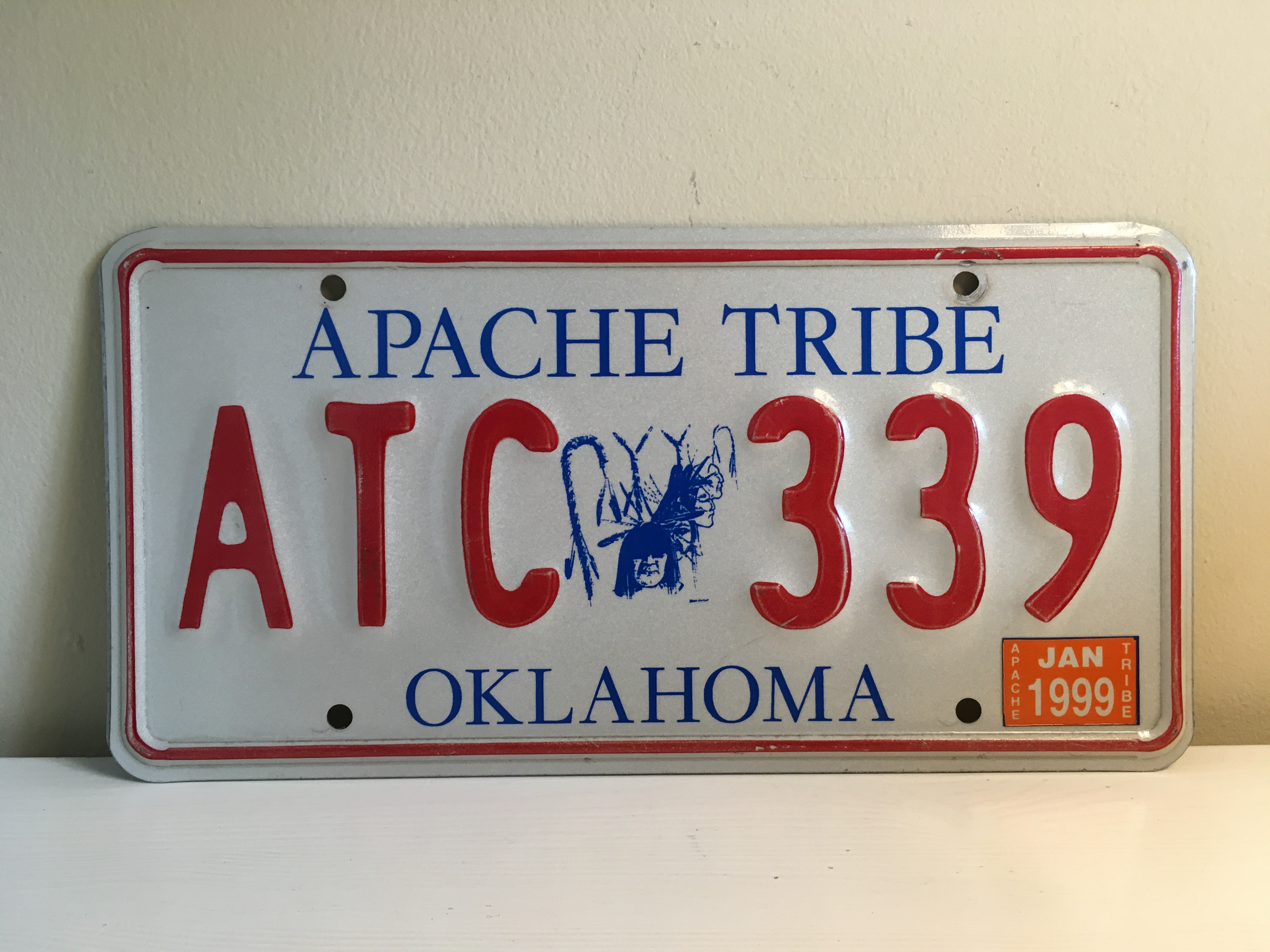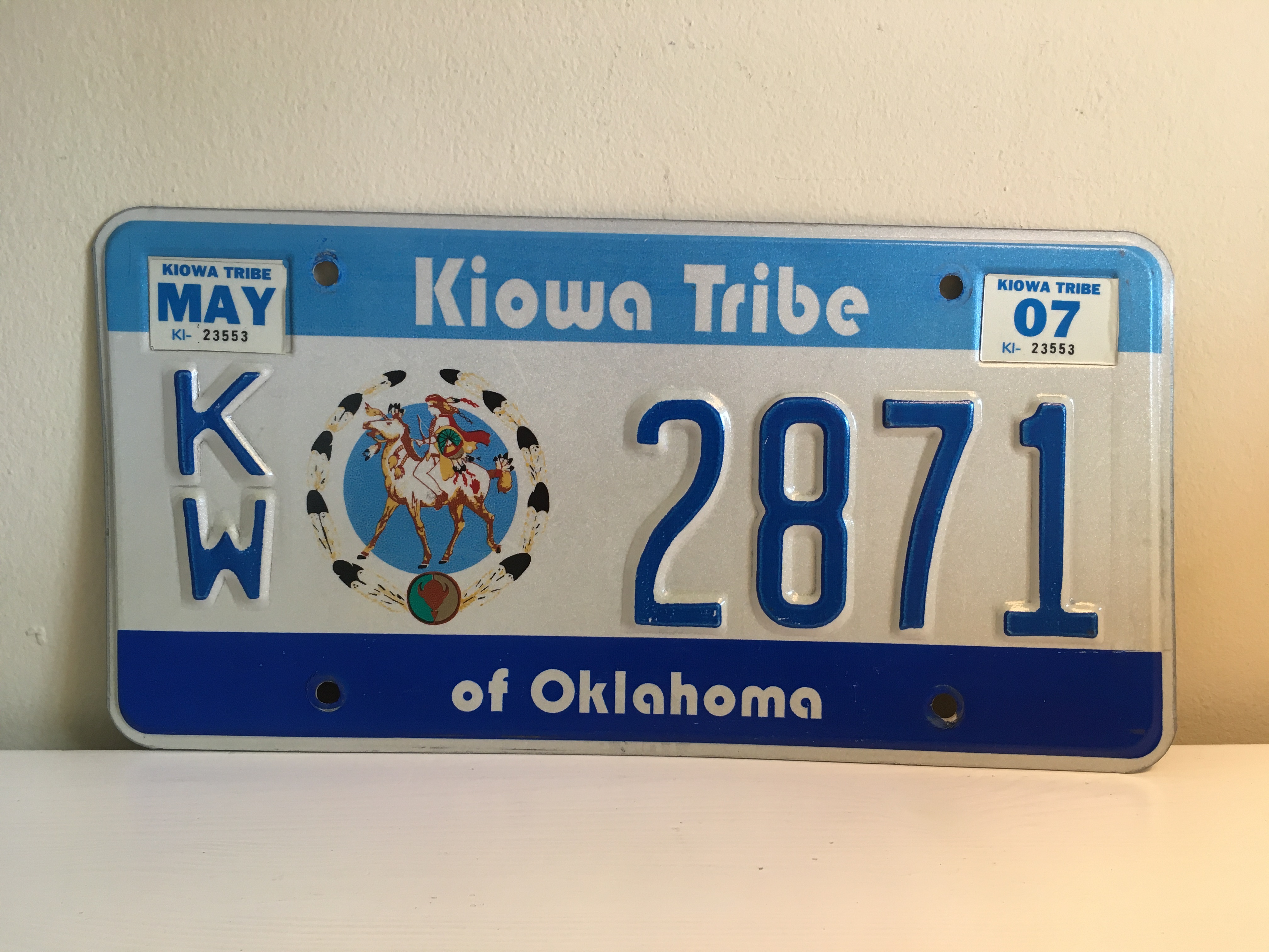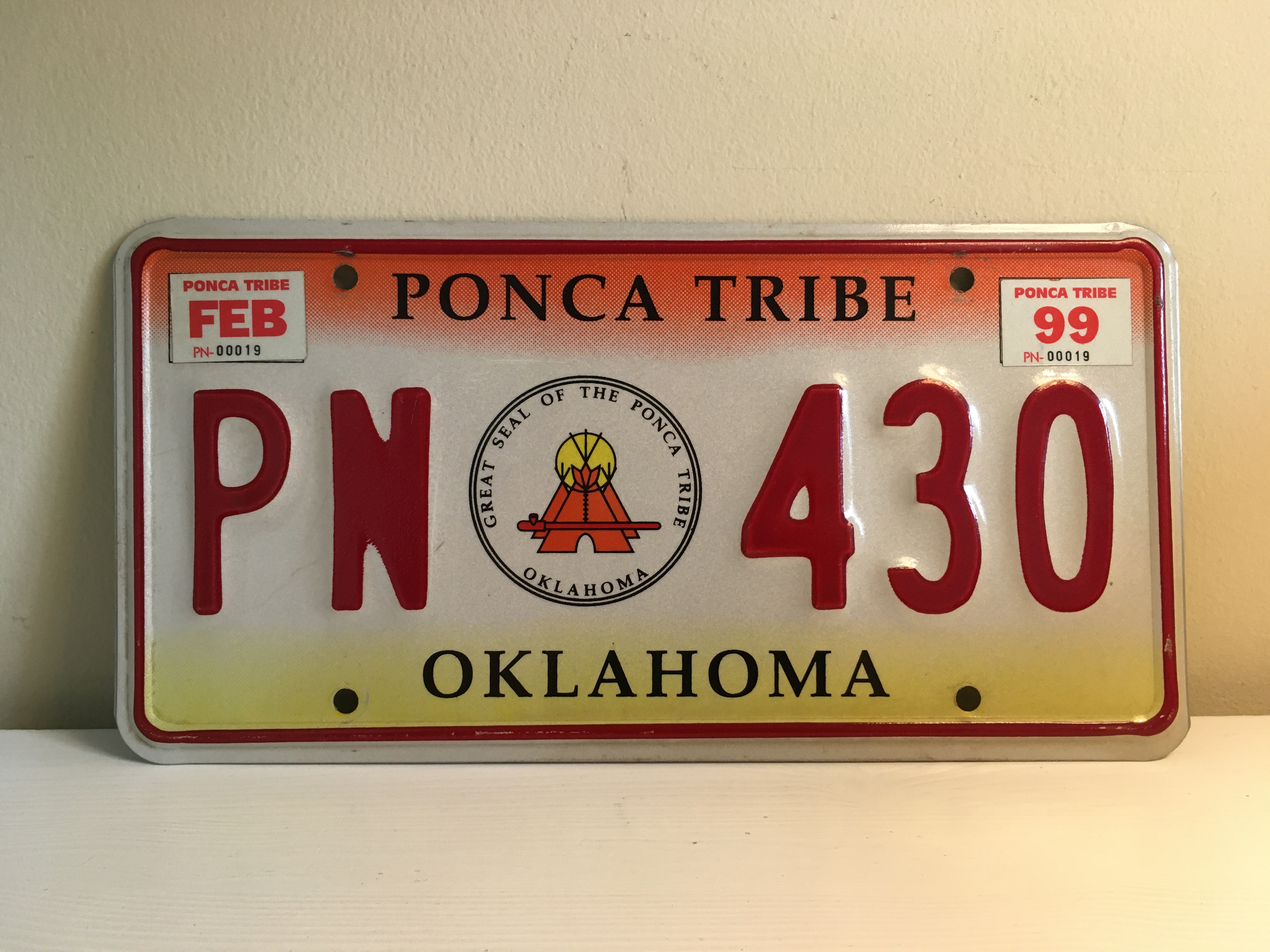 Native American plates My collection also contains 44 license plates of Indian Tribes which are officially recognized by the issuing state. 20 of them were used by tribes with less than 5,000 members. As my other license plates from the US, the license plates of Indian Tribes were issued for private cars, are mostly embossed and in very good condition (vg+/ex) with validation stickers. Iowa Tribe