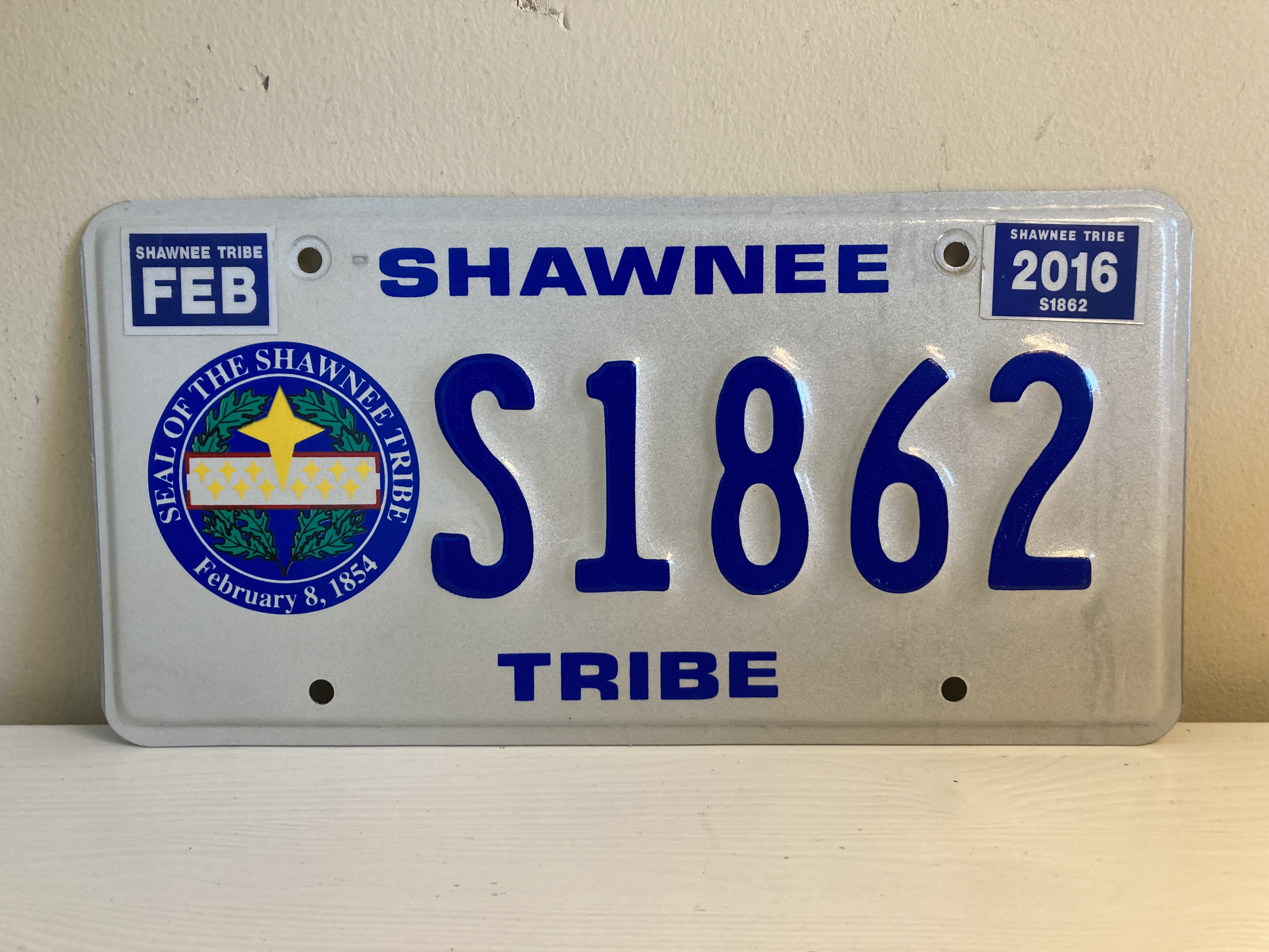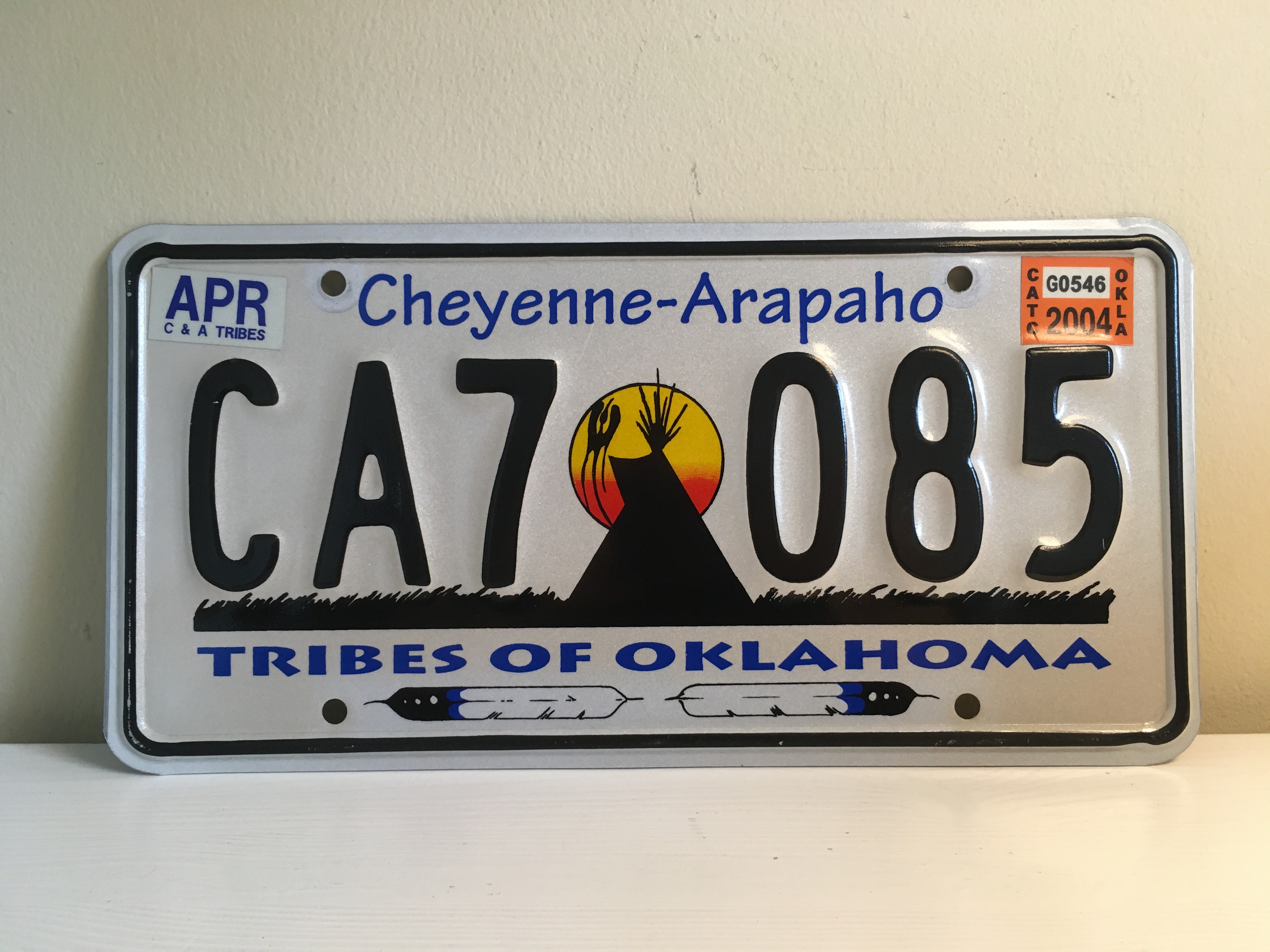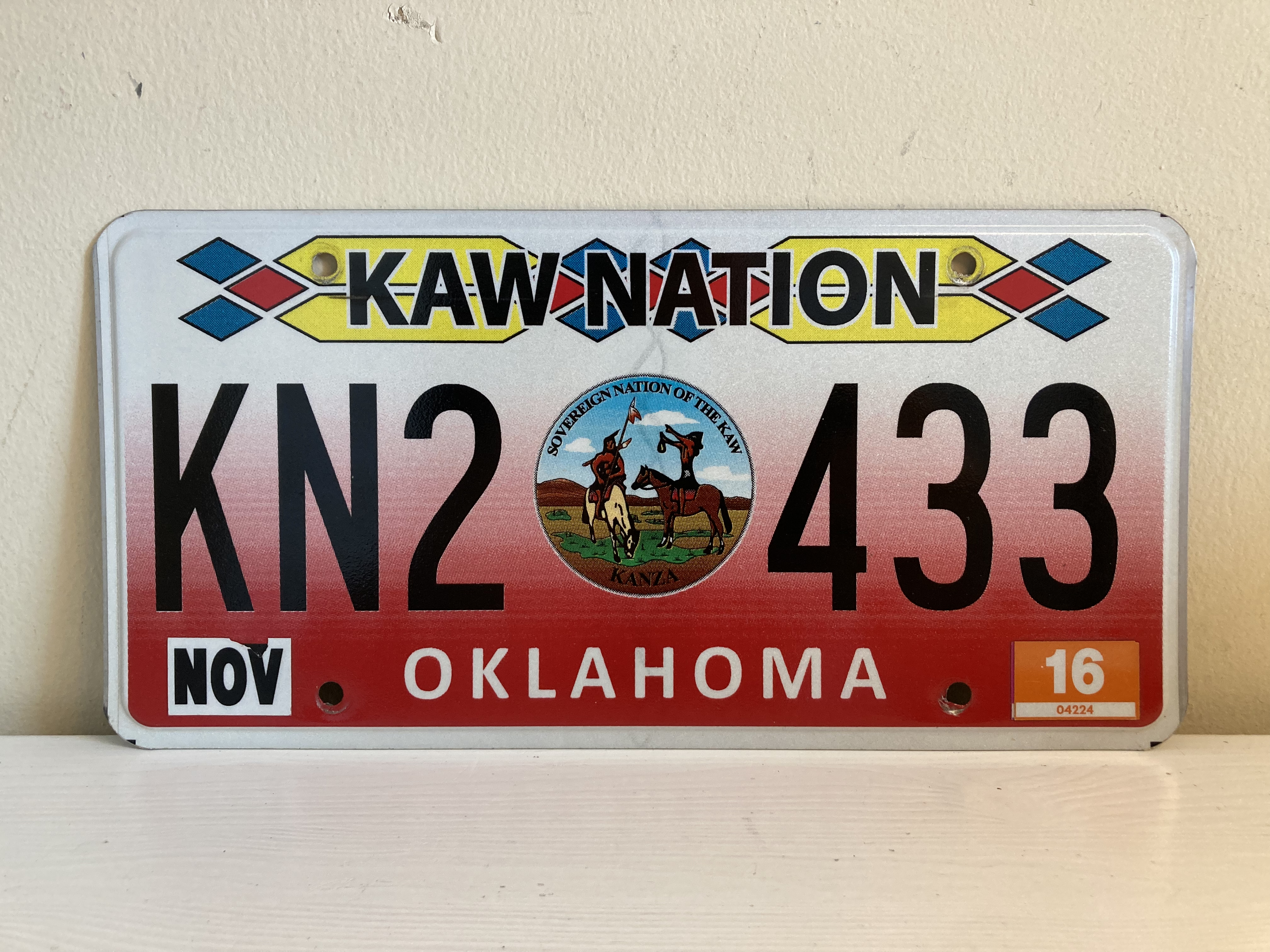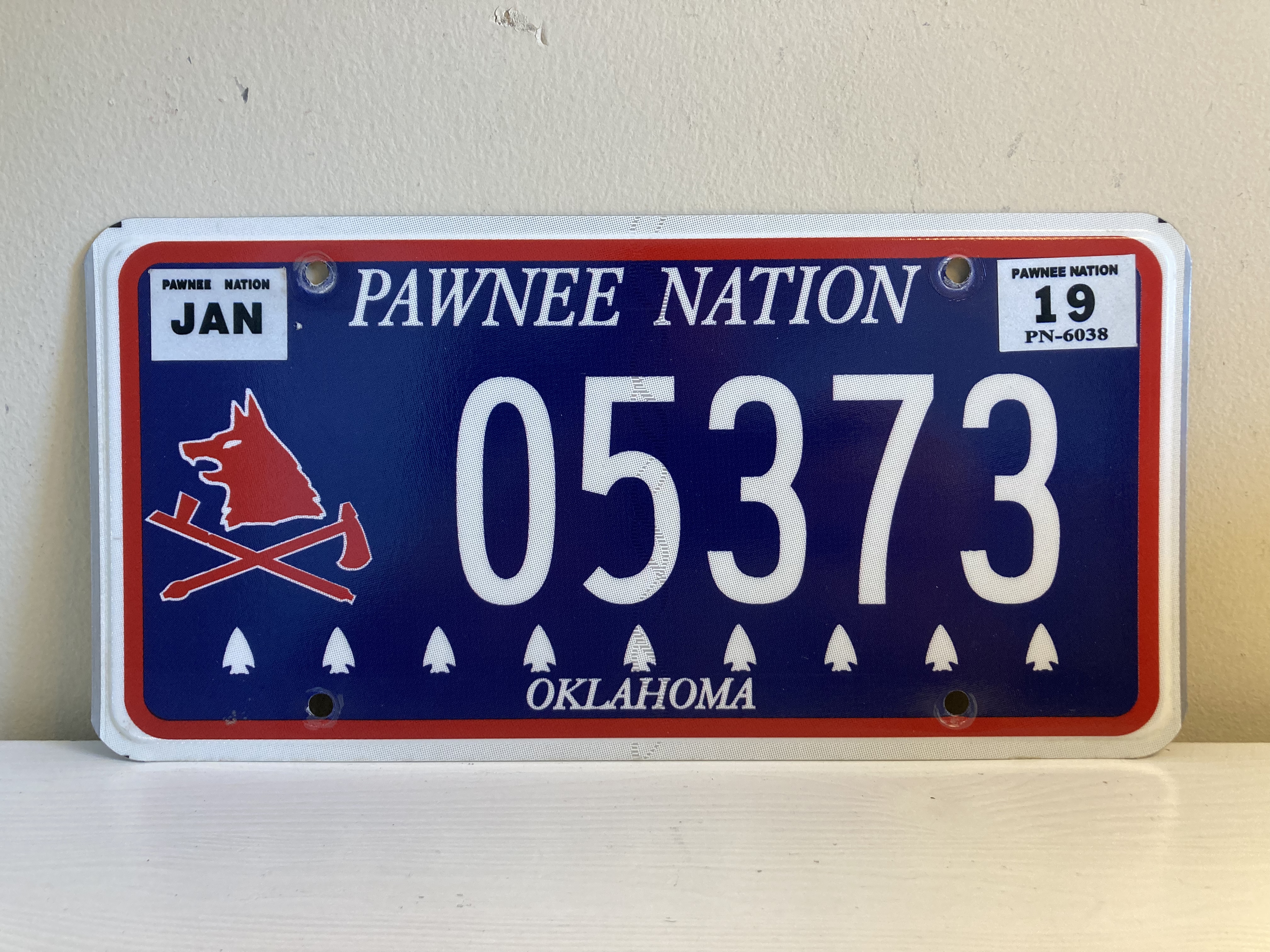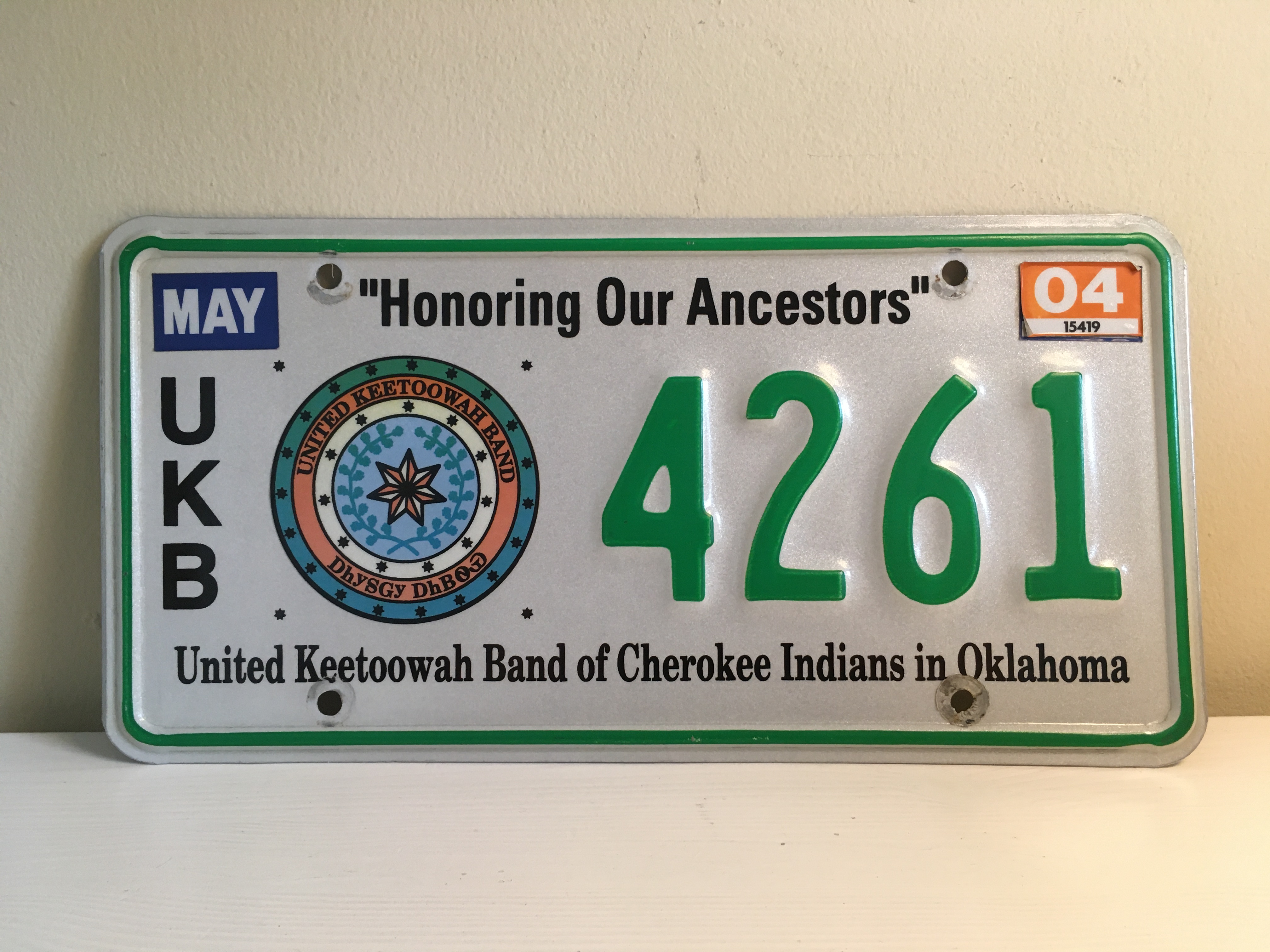 Native American plates My collection also contains 44 license plates of Indian Tribes which are officially recognized by the issuing state. 20 of them were used by tribes with less than 5,000 members. As my other license plates from the US, the license plates of Indian Tribes were issued for private cars, are mostly embossed and in very good condition (vg+/ex) with validation stickers. Iowa Tribe
