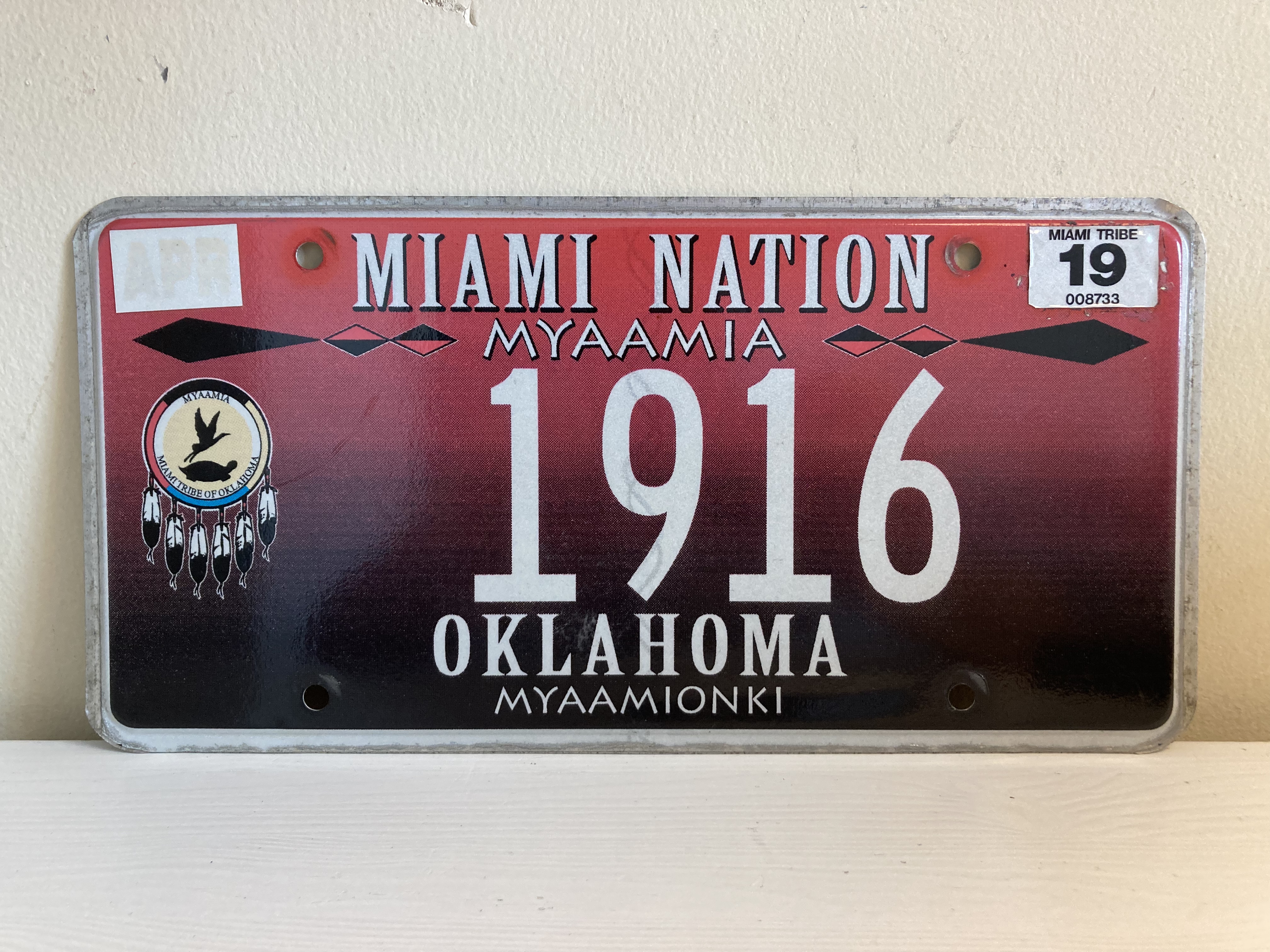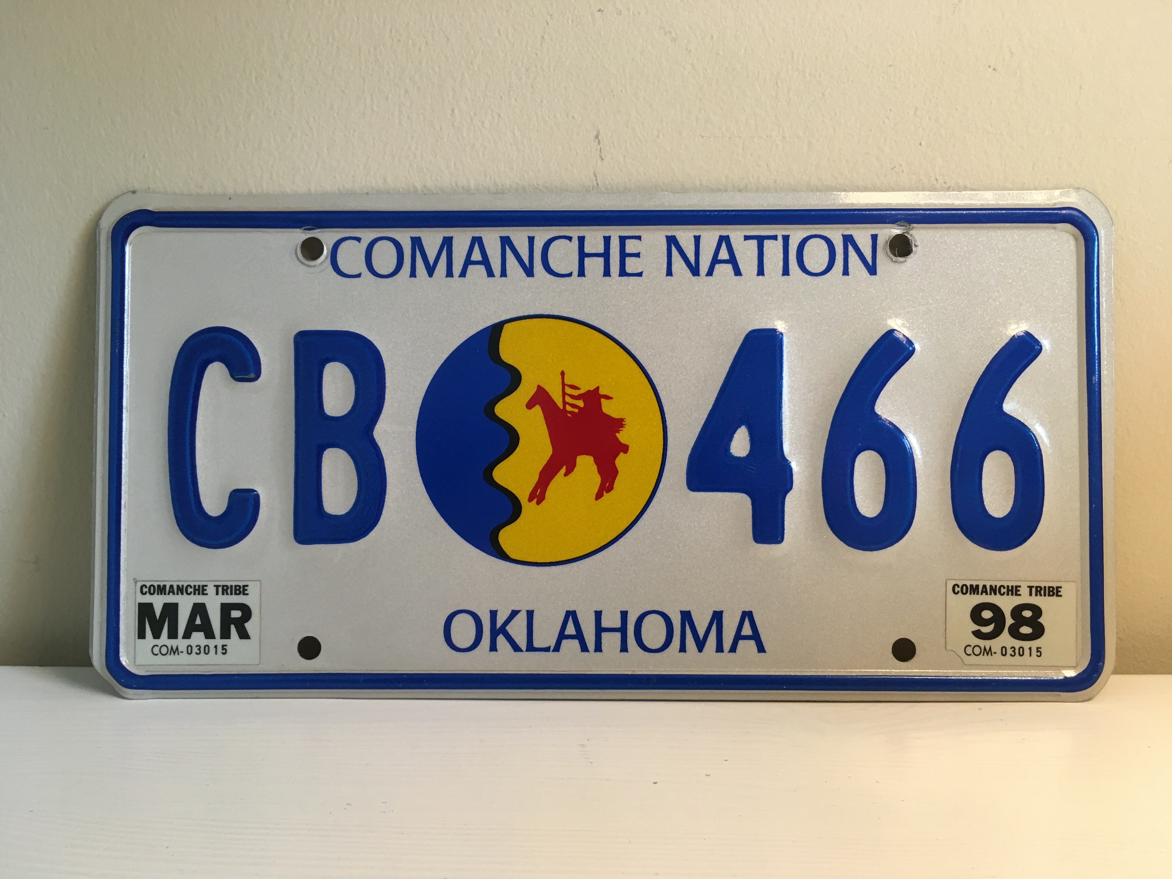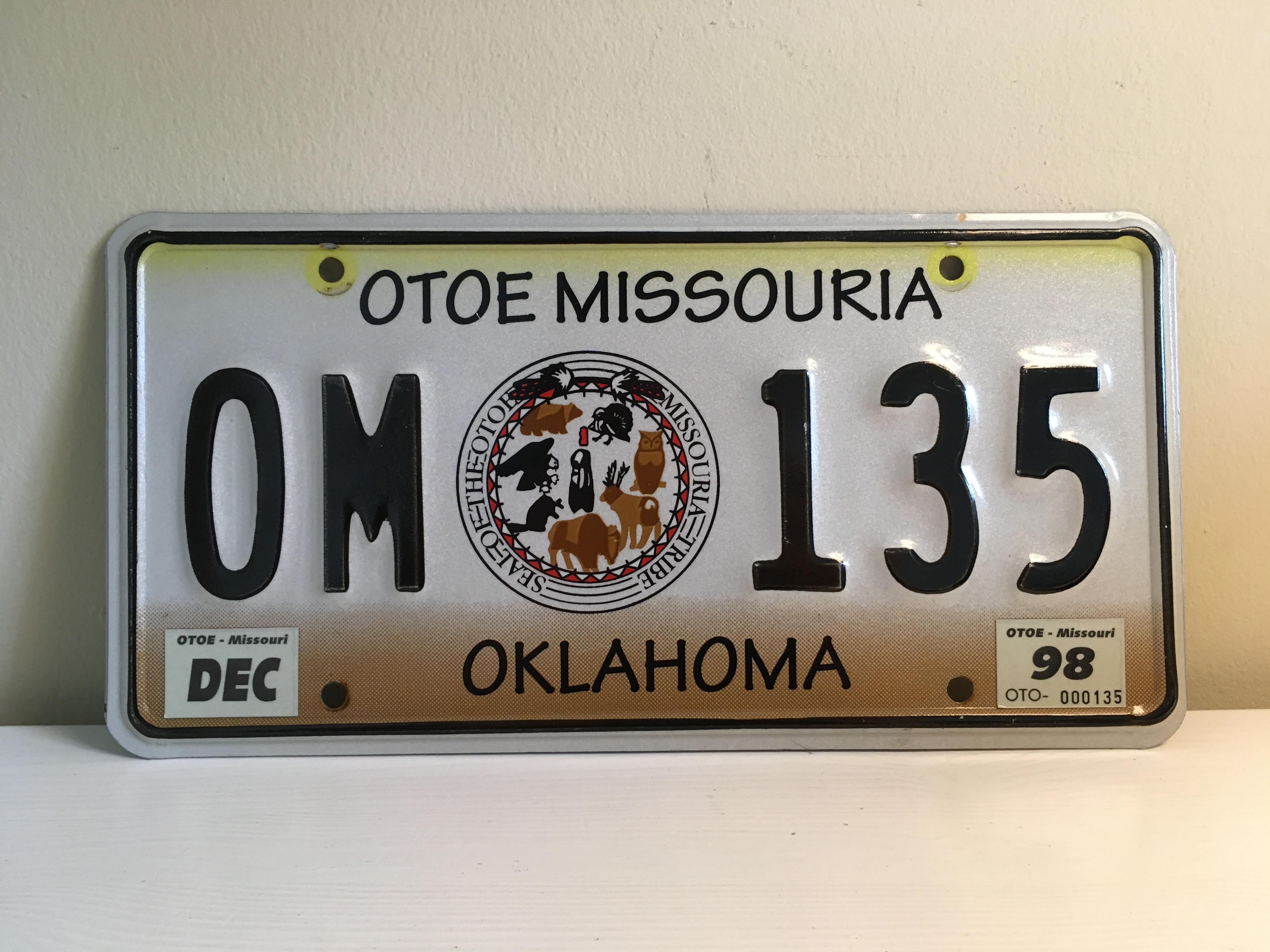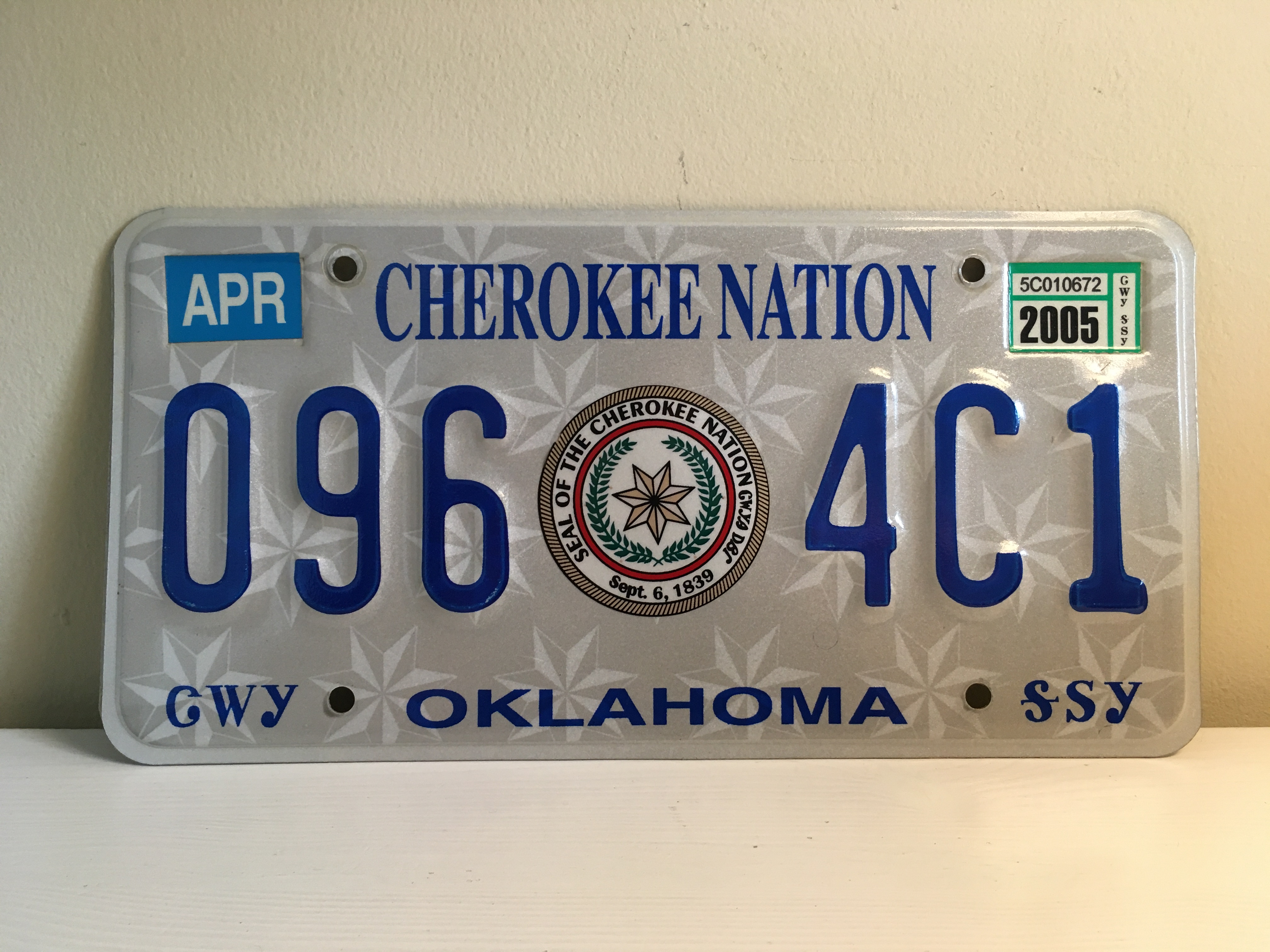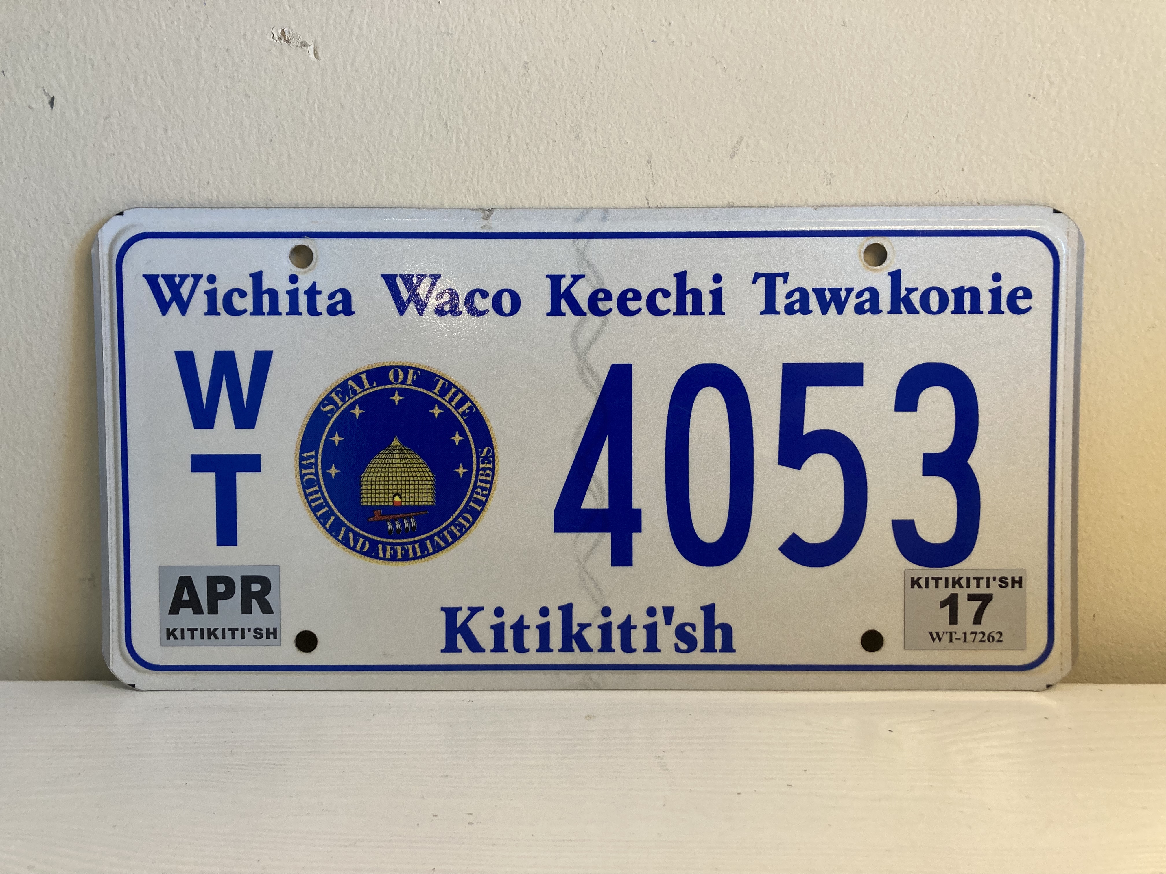 Native American plates My collection also contains 44 license plates of Indian Tribes which are officially recognized by the issuing state. 20 of them were used by tribes with less than 5,000 members. As my other license plates from the US, the license plates of Indian Tribes were issued for private cars, are mostly embossed and in very good condition (vg+/ex) with validation stickers. Iowa Tribe