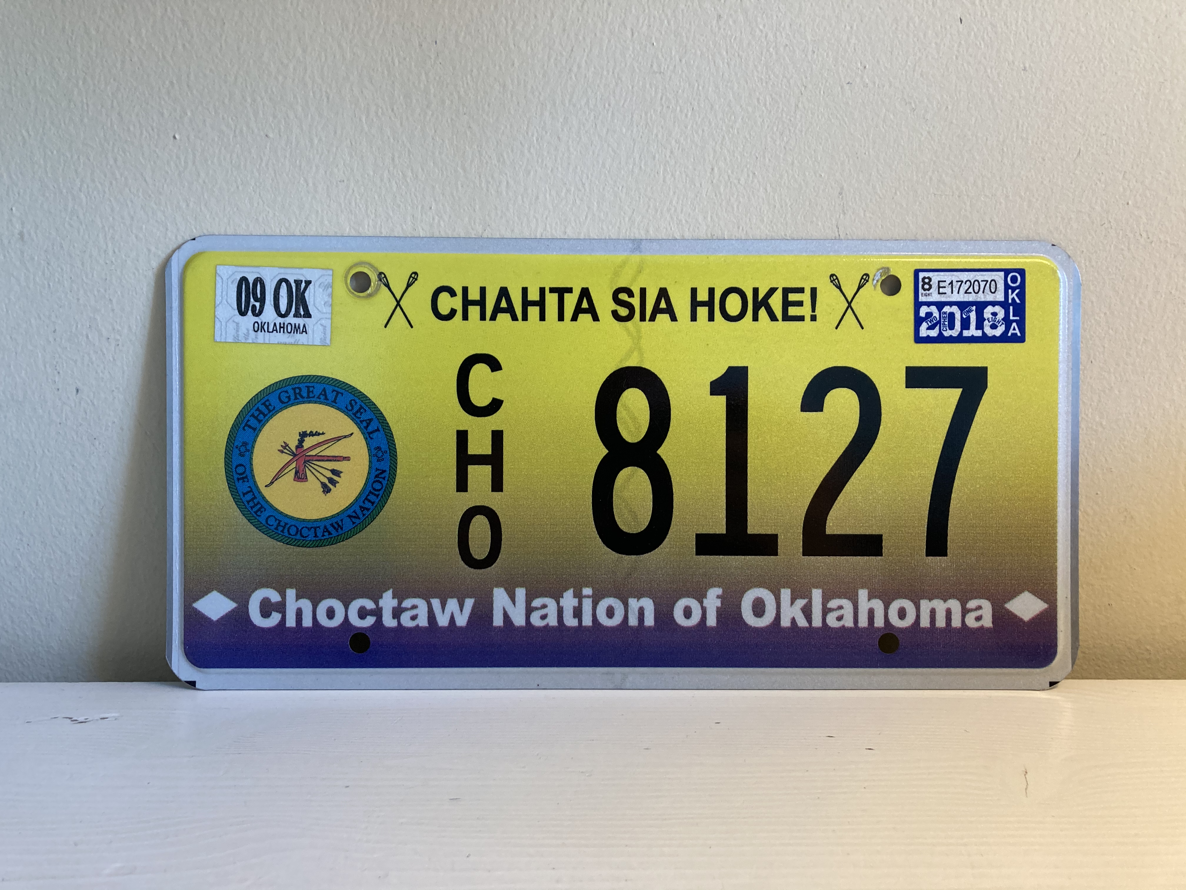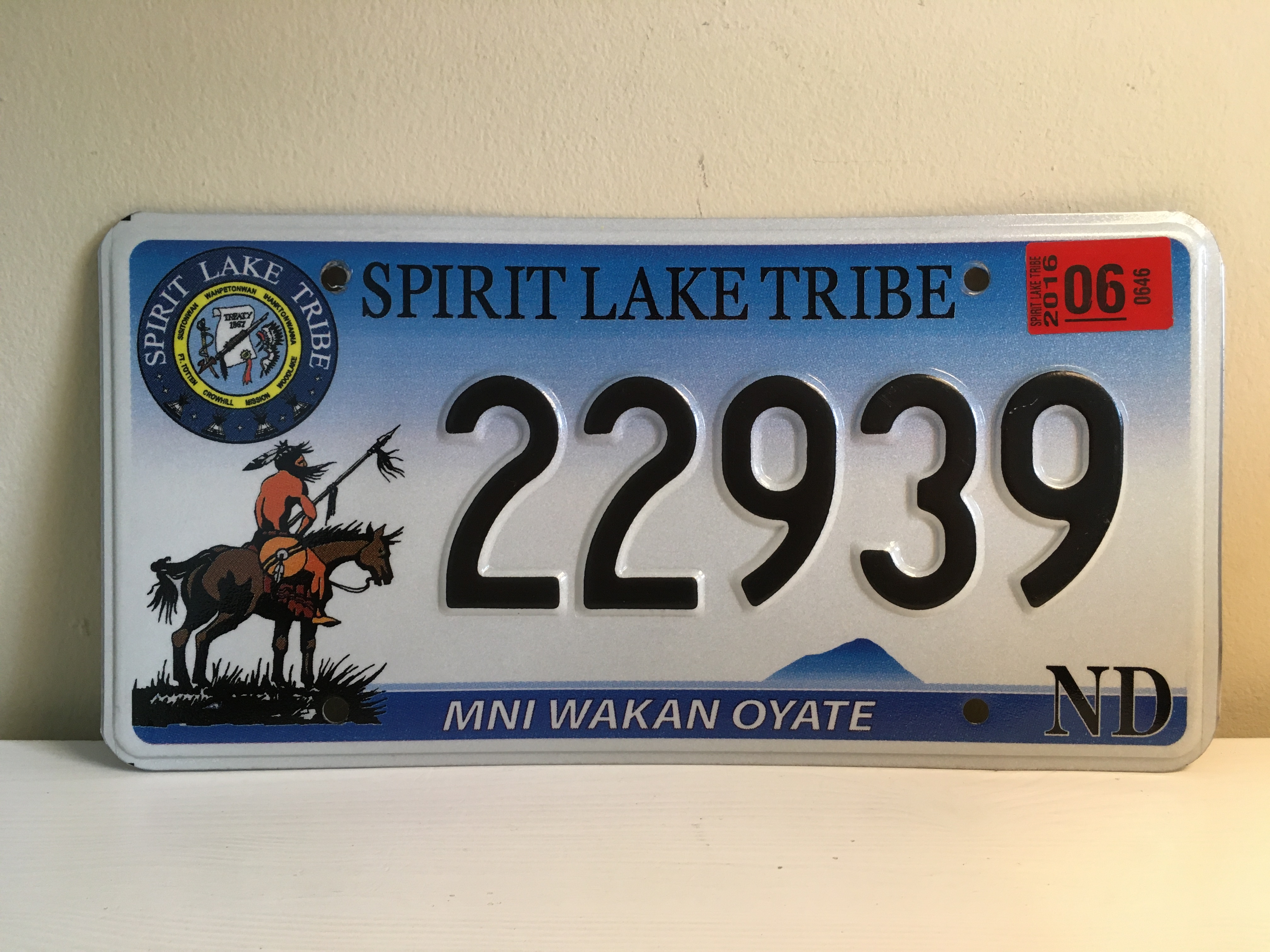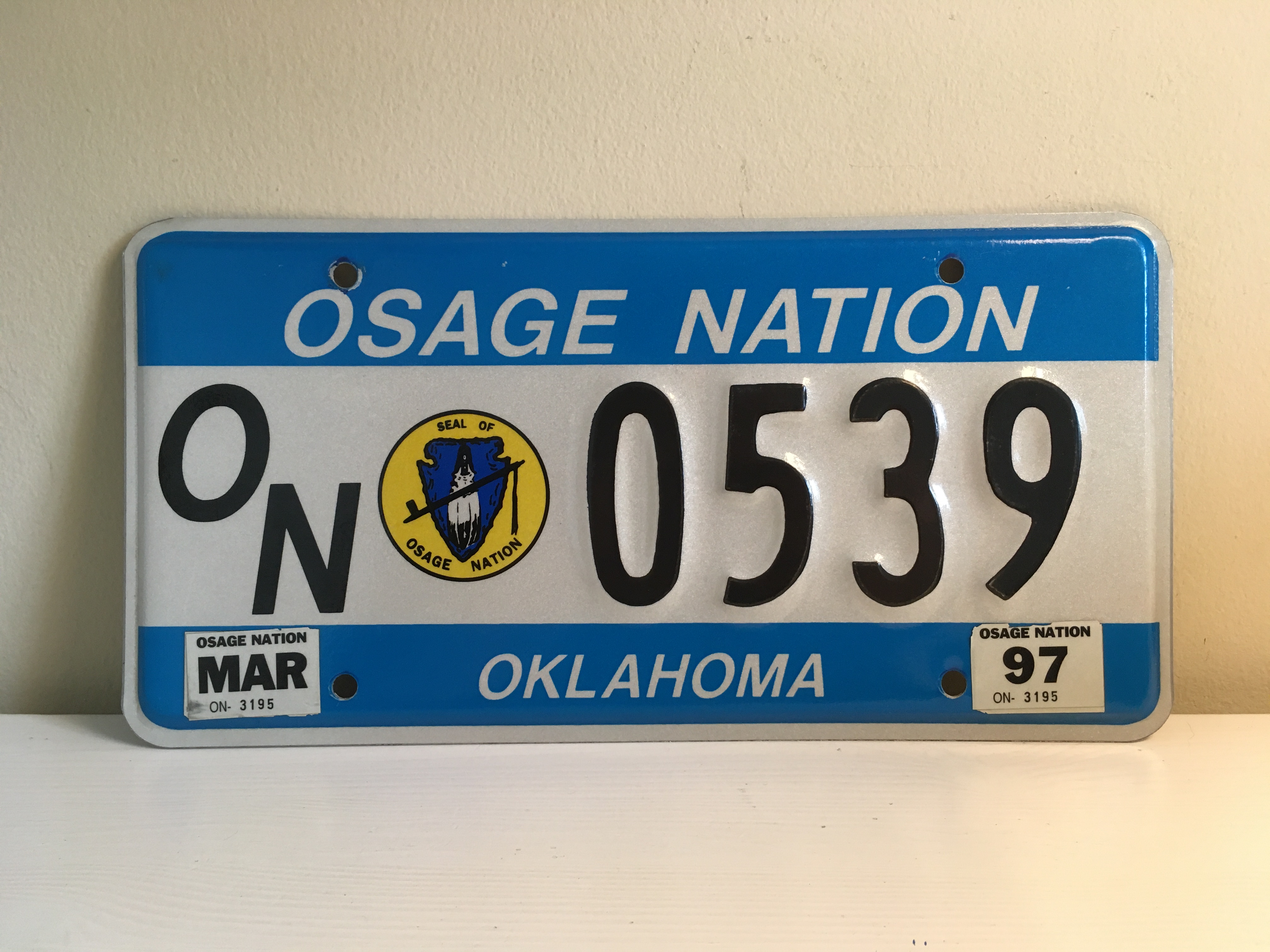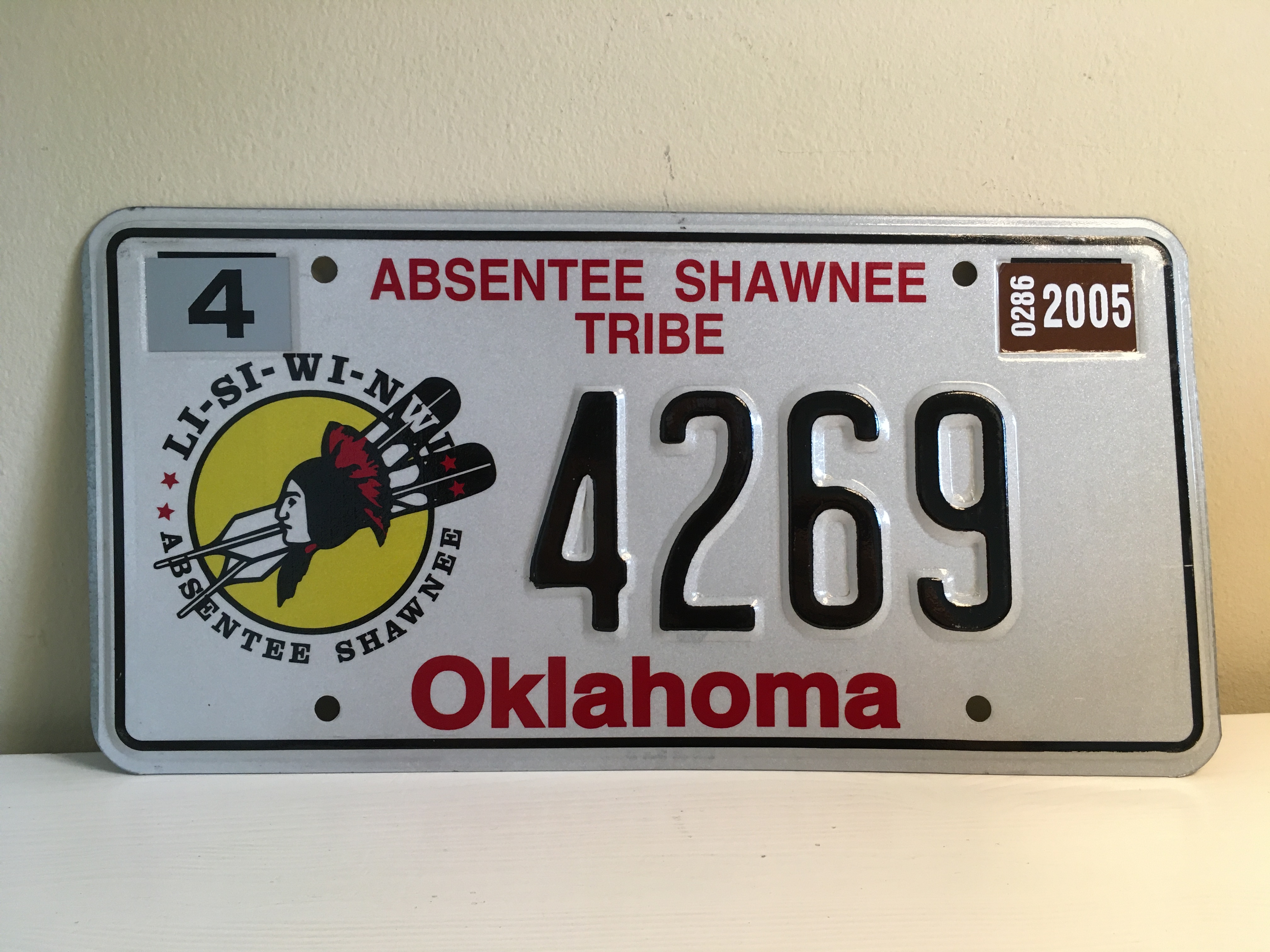 Native American plates My collection also contains 44 license plates of Indian Tribes which are officially recognized by the issuing state. 20 of them were used by tribes with less than 5,000 members. As my other license plates from the US, the license plates of Indian Tribes were issued for private cars, are mostly embossed and in very good condition (vg+/ex) with validation stickers. Iowa Tribe