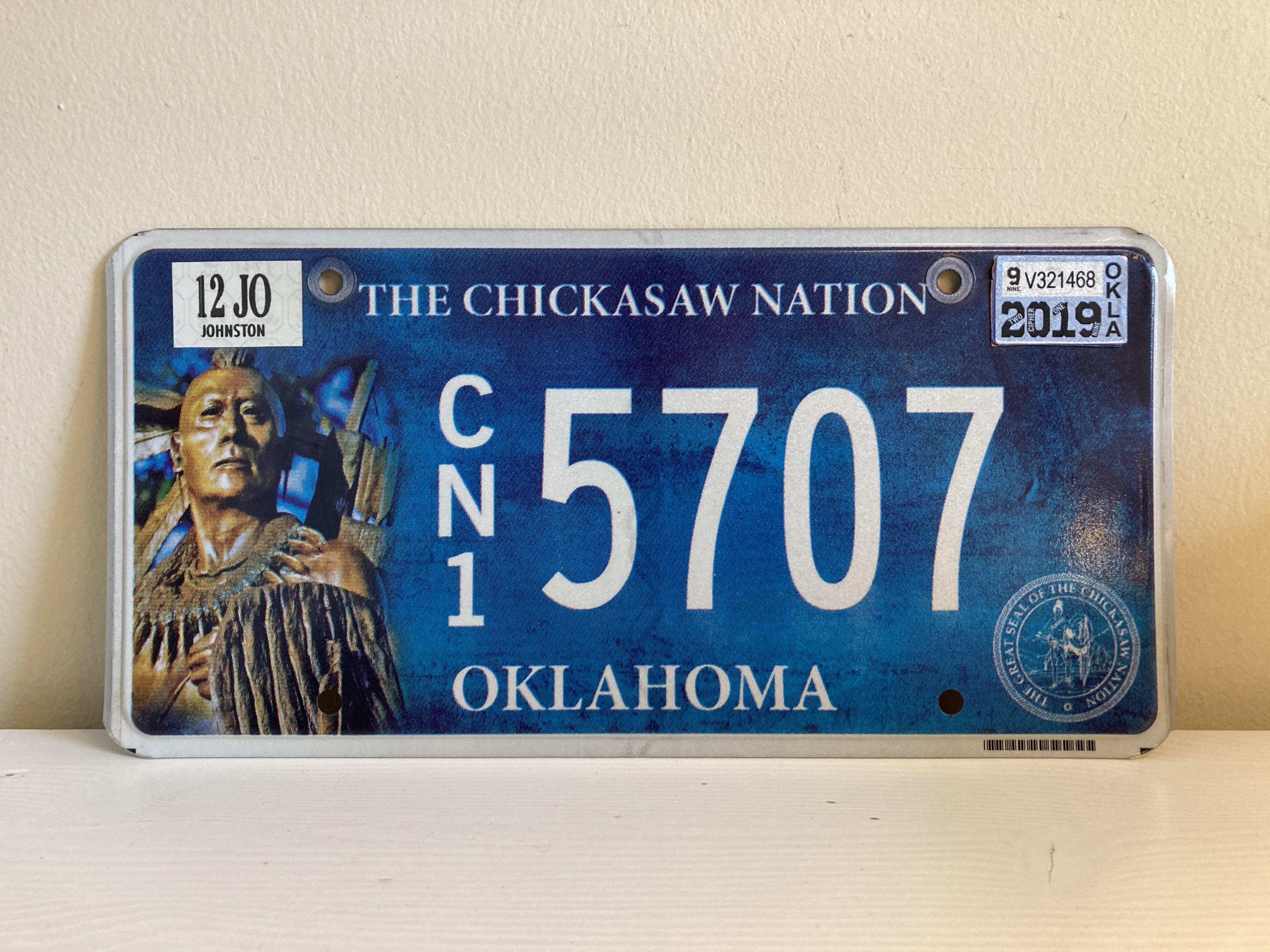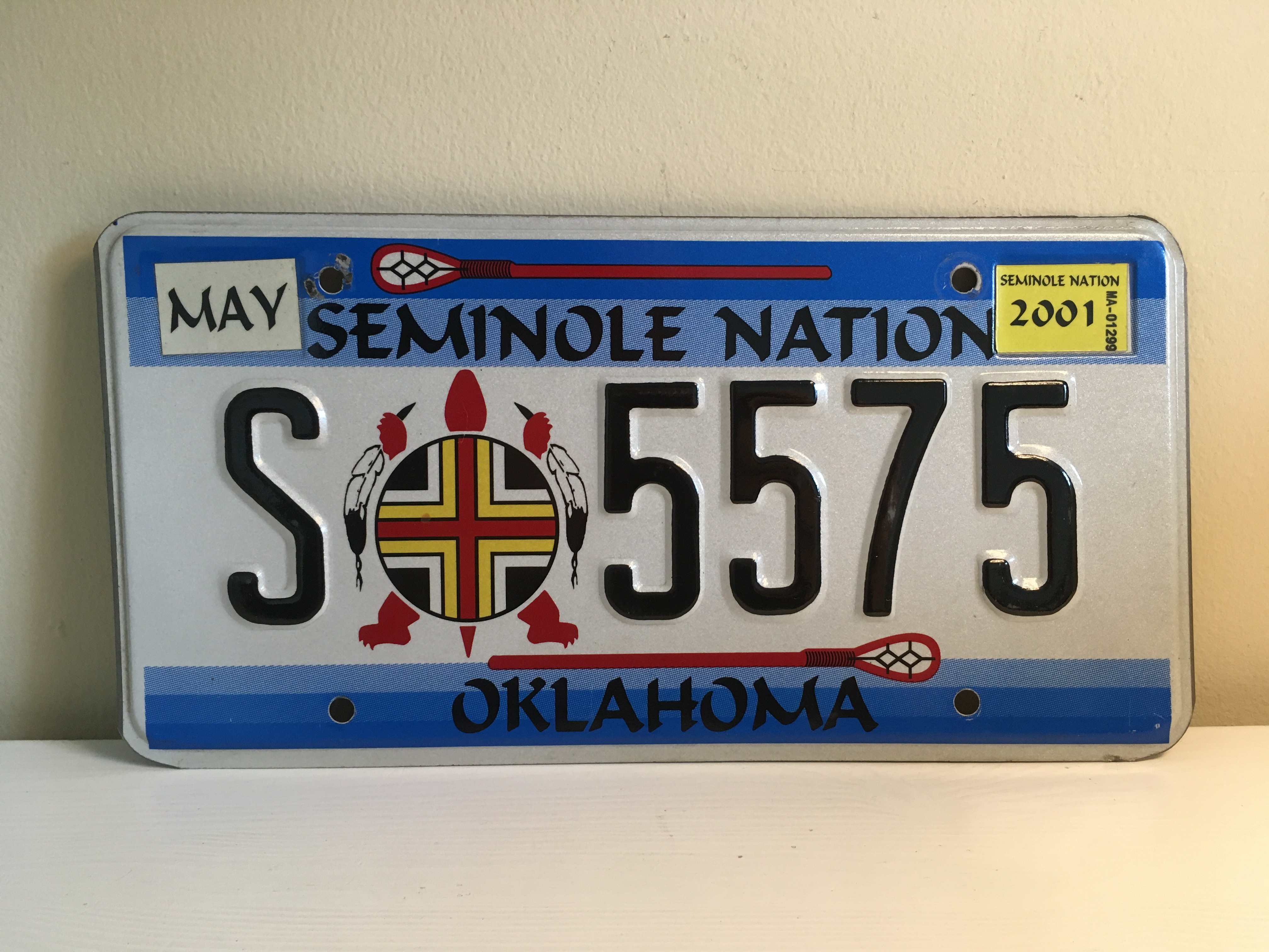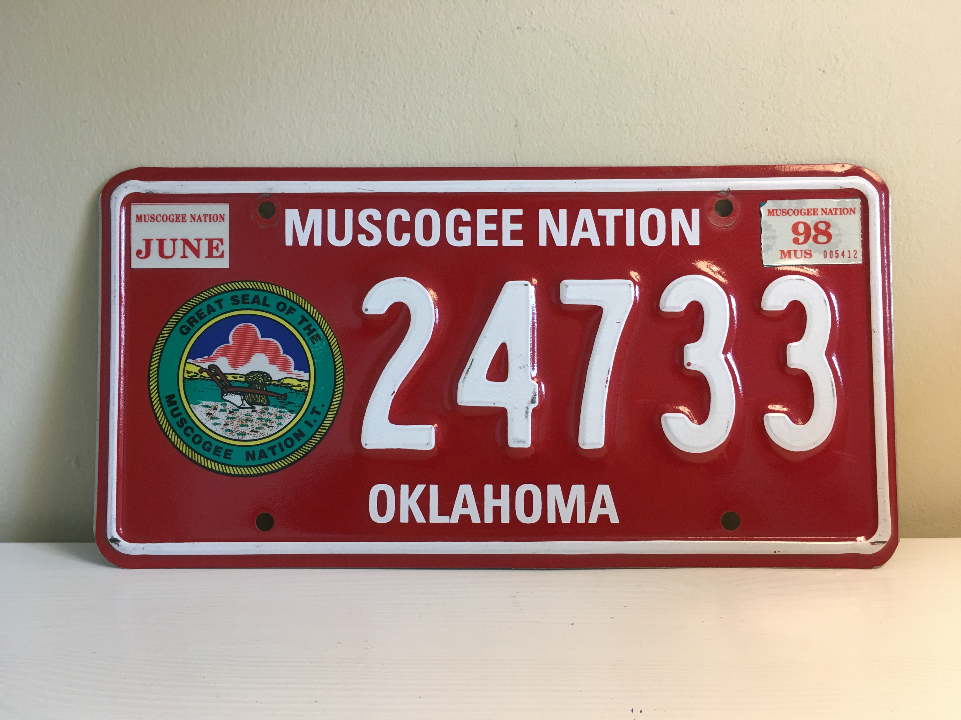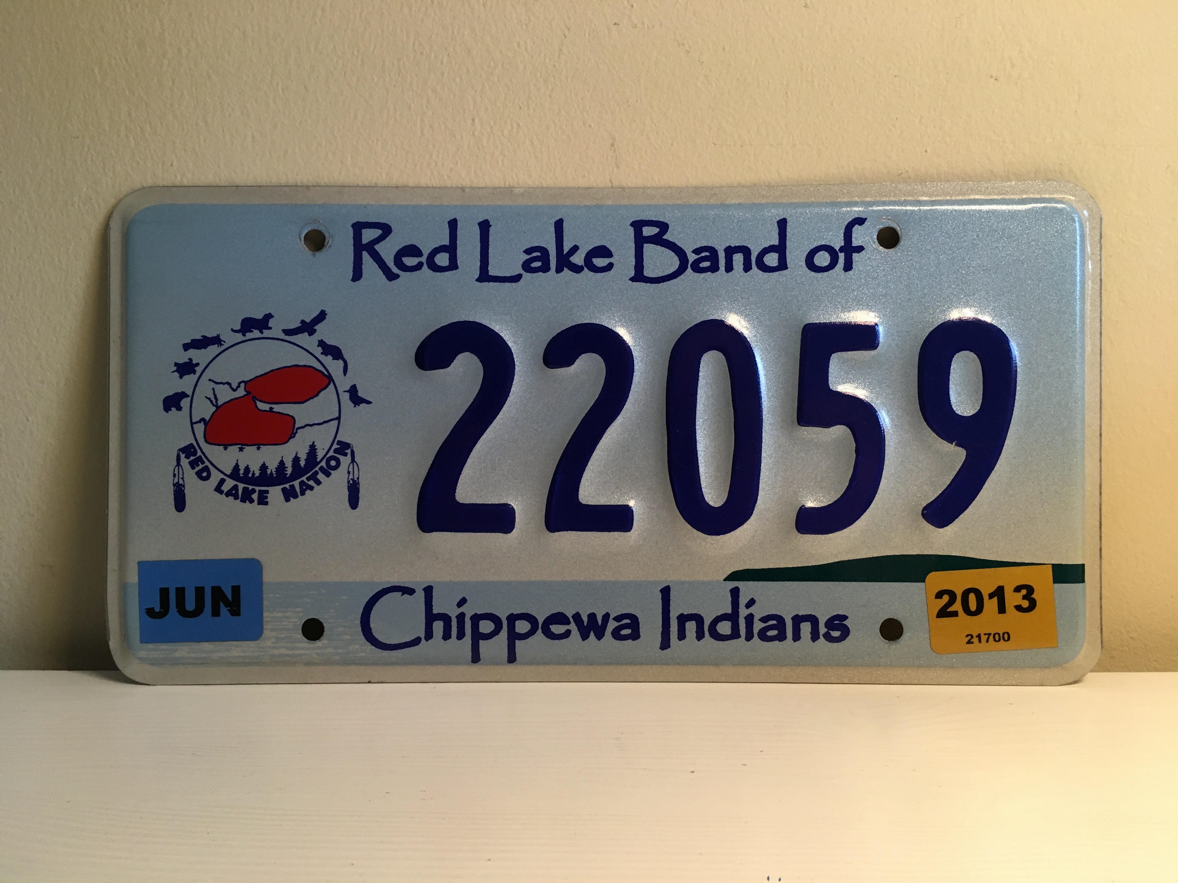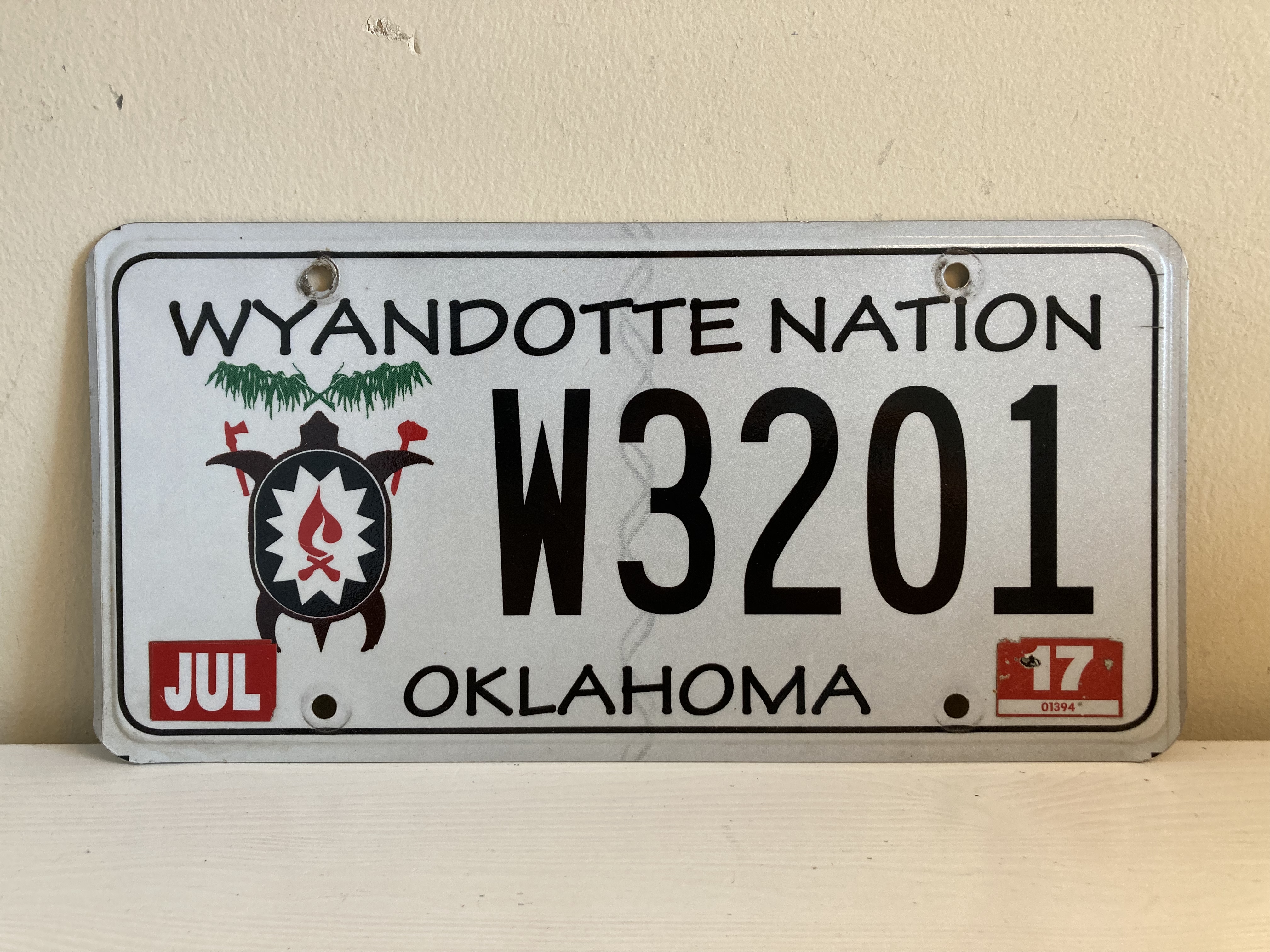 Native American plates My collection also contains 44 license plates of Indian Tribes which are officially recognized by the issuing state. 20 of them were used by tribes with less than 5,000 members. As my other license plates from the US, the license plates of Indian Tribes were issued for private cars, are mostly embossed and in very good condition (vg+/ex) with validation stickers. Iowa Tribe